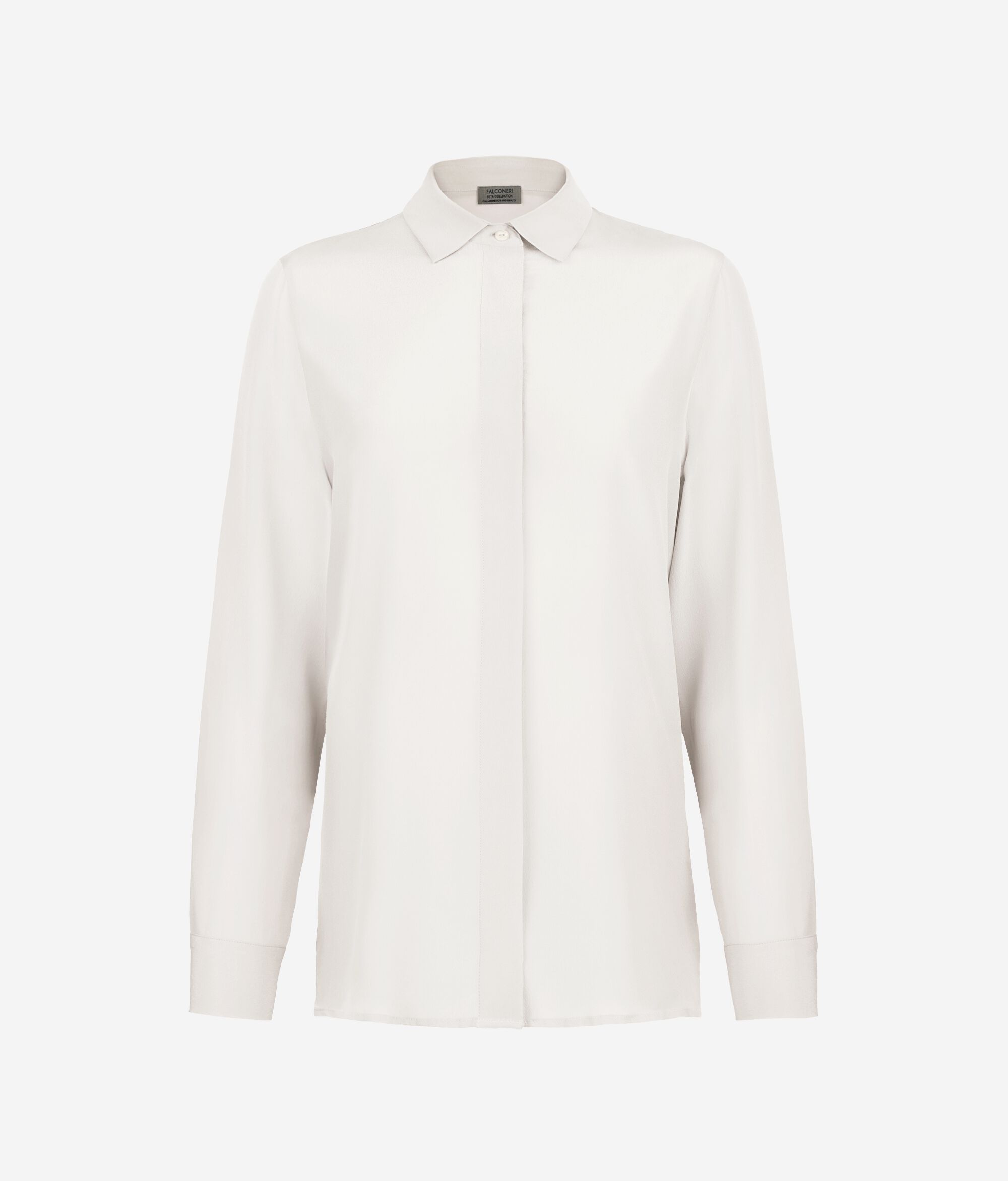 Descubre la elegancia atemporal de esta camisa de seda natural, diseñada para envolver y realzar la silueta femenina con una delicada fluidez. Su exquisita textura y su confección en pura seda ofrecen una sensación de suavidad inigualable, perfecta para cualquier ocasión. Ya sea que busques una camisa de seda de mujer para un look sofisticado de oficina o una opción versátil como la clásica camisa blanca de seda de mujer, esta prenda se adapta con elegancia a cada estilo. Disponible en tonos esenciales, como la camisa de seda negra de mujer, es una pieza imprescindible en cualquier armario.