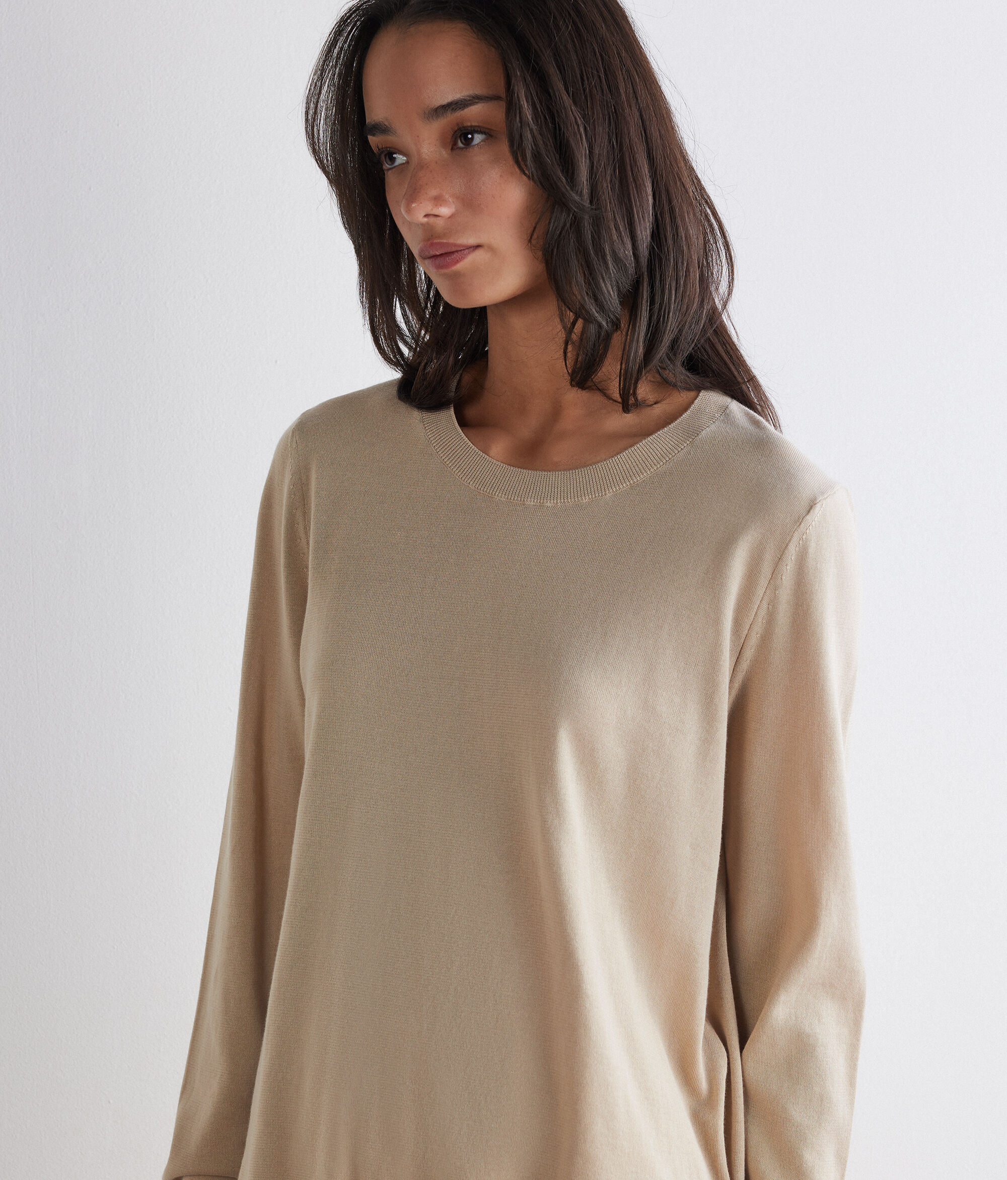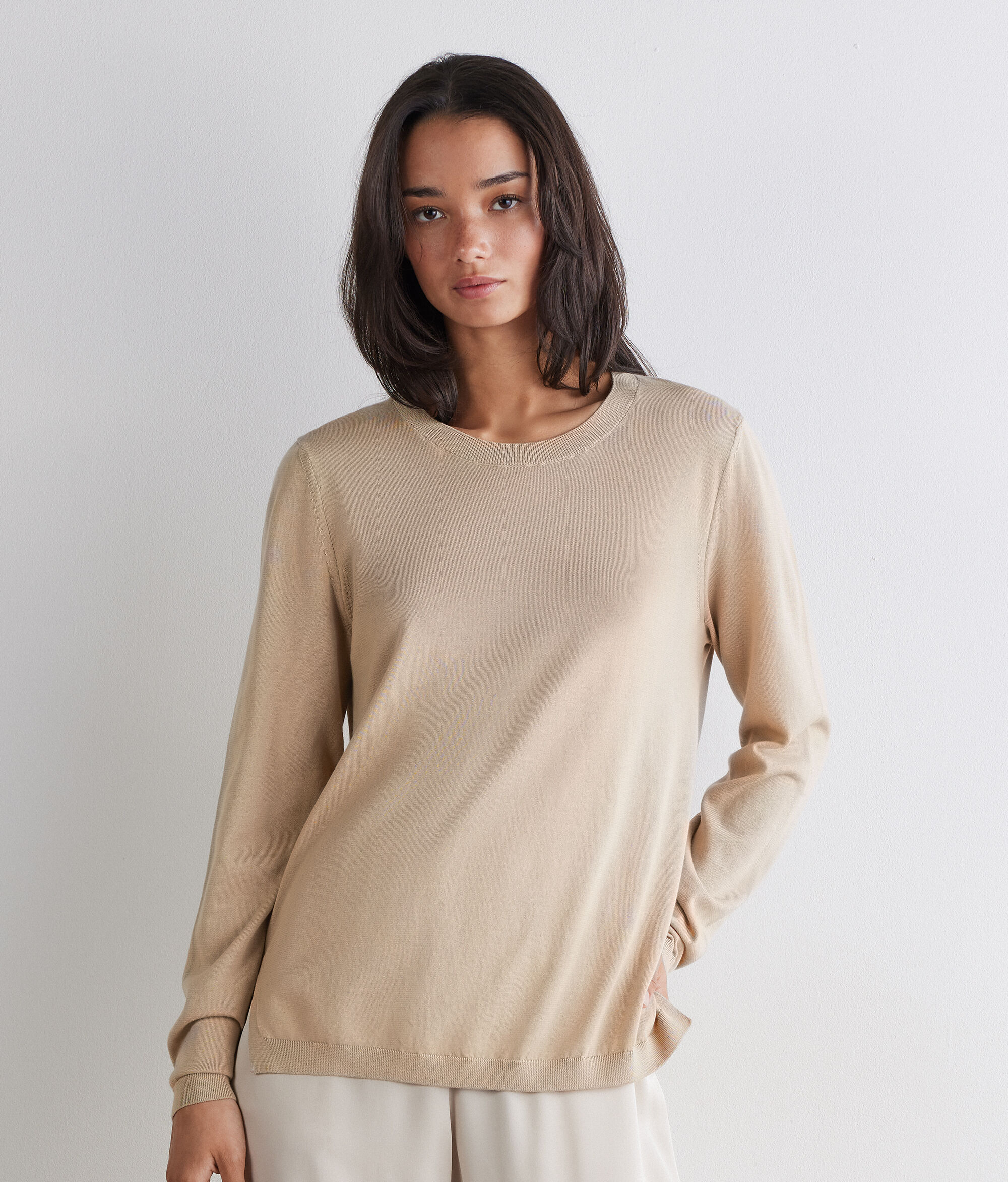 Camiseta en suave algodón, esencial y versátil. El cuello redondo clásico y los remates de canalé definen la línea, mientras que su corte estándar la convierte en una prenda perfecta para llevarla sola o como base para crear looks de capas.