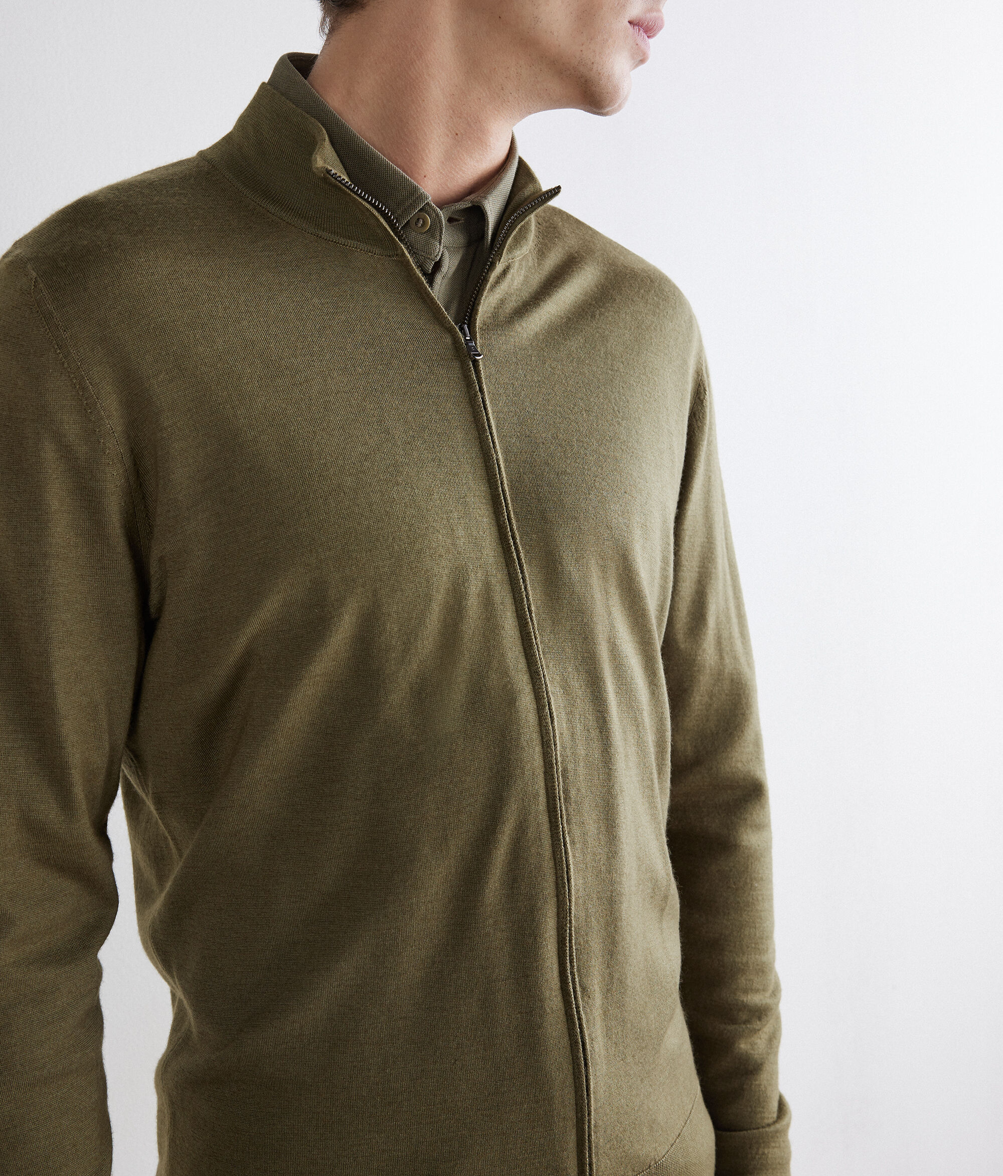 Este cárdigan de cashmere de hombre presenta un corte recto con cierre de cremallera, cuello alto, puños y bajo en punto de canalé. Confeccionado en Cashmere Ultrafine, obtenido del delicado subpelo de la cabra de Cachemira procedente de Mongolia, es una prenda naturalmente ligera, transpirable y termorreguladora. Este cárdigan con cremallera de hombre combina un diseño esencial con la durabilidad y la suavidad característica del cashmere de origen responsable. Un cárdigan de punto de hombre con el sello de la artesanía italiana.