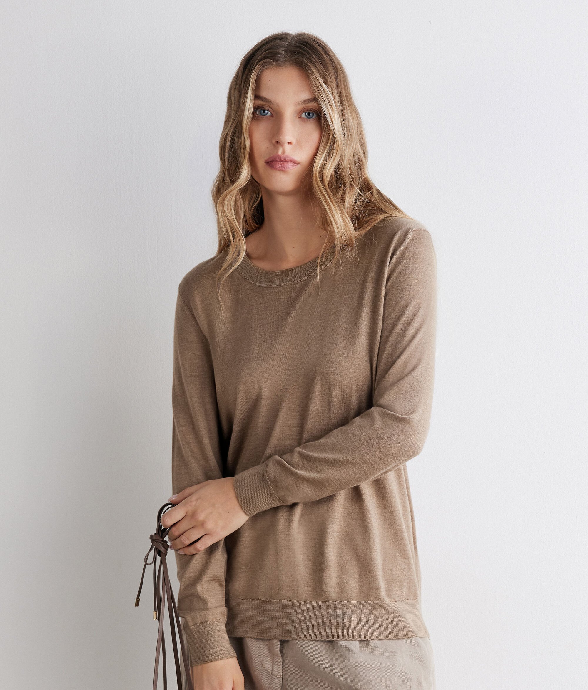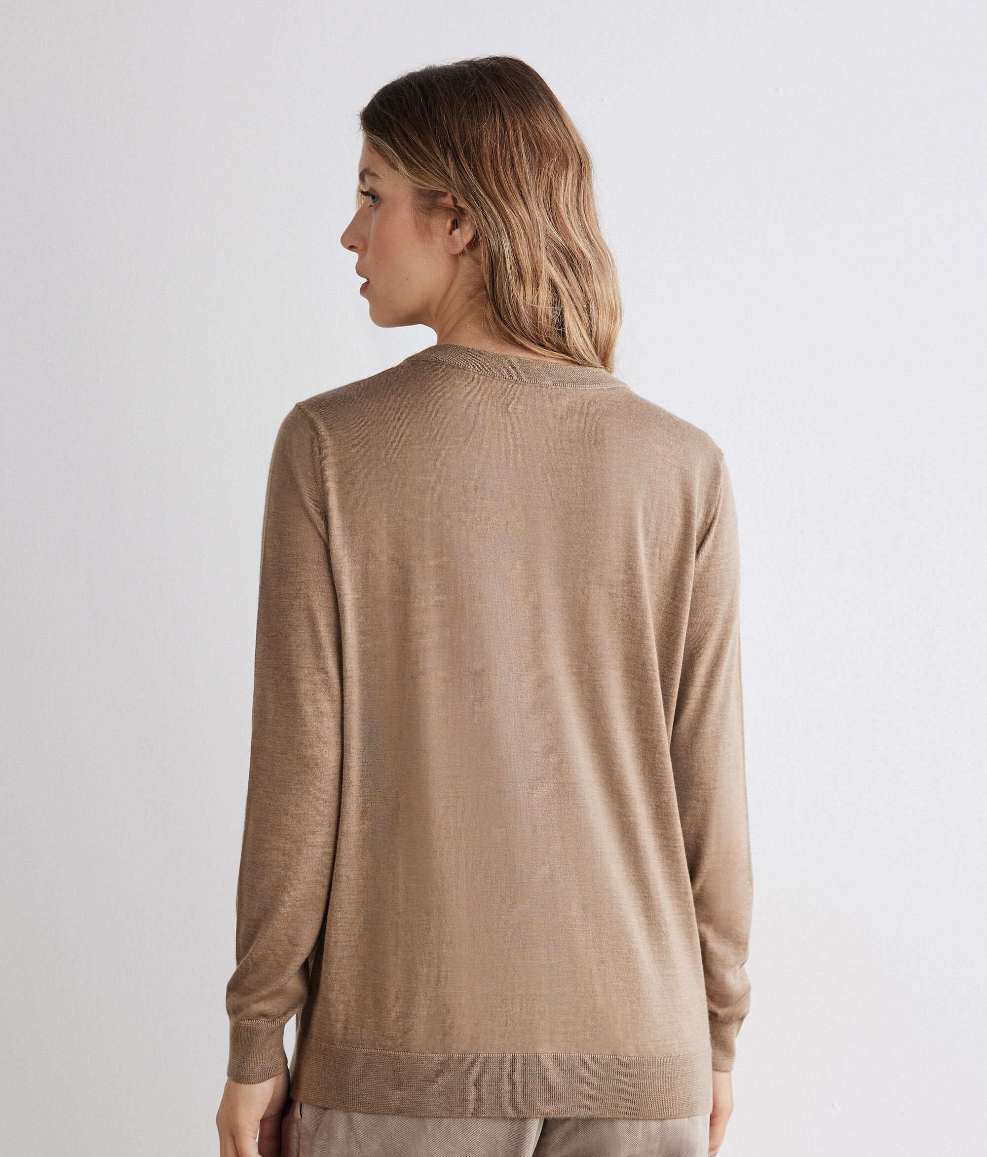 Este jersey de cuello redondo de mujer en Cashmere Ultrafine destaca por su diseño esencial y atemporal, con el sello de la artesanía italiana. El remate de canalé del cuello, los puños y el bajo añaden estructura y una textura sutil a la prenda. Ligero y refinado, este jersey básico de cuello redondo de mujer es una pieza de calidad que acompaña con elegancia los días más frescos. Un jersey de punto de cuello redondo de mujer pensado para quienes valoran la sencillez y la buena calidad de los tejidos.