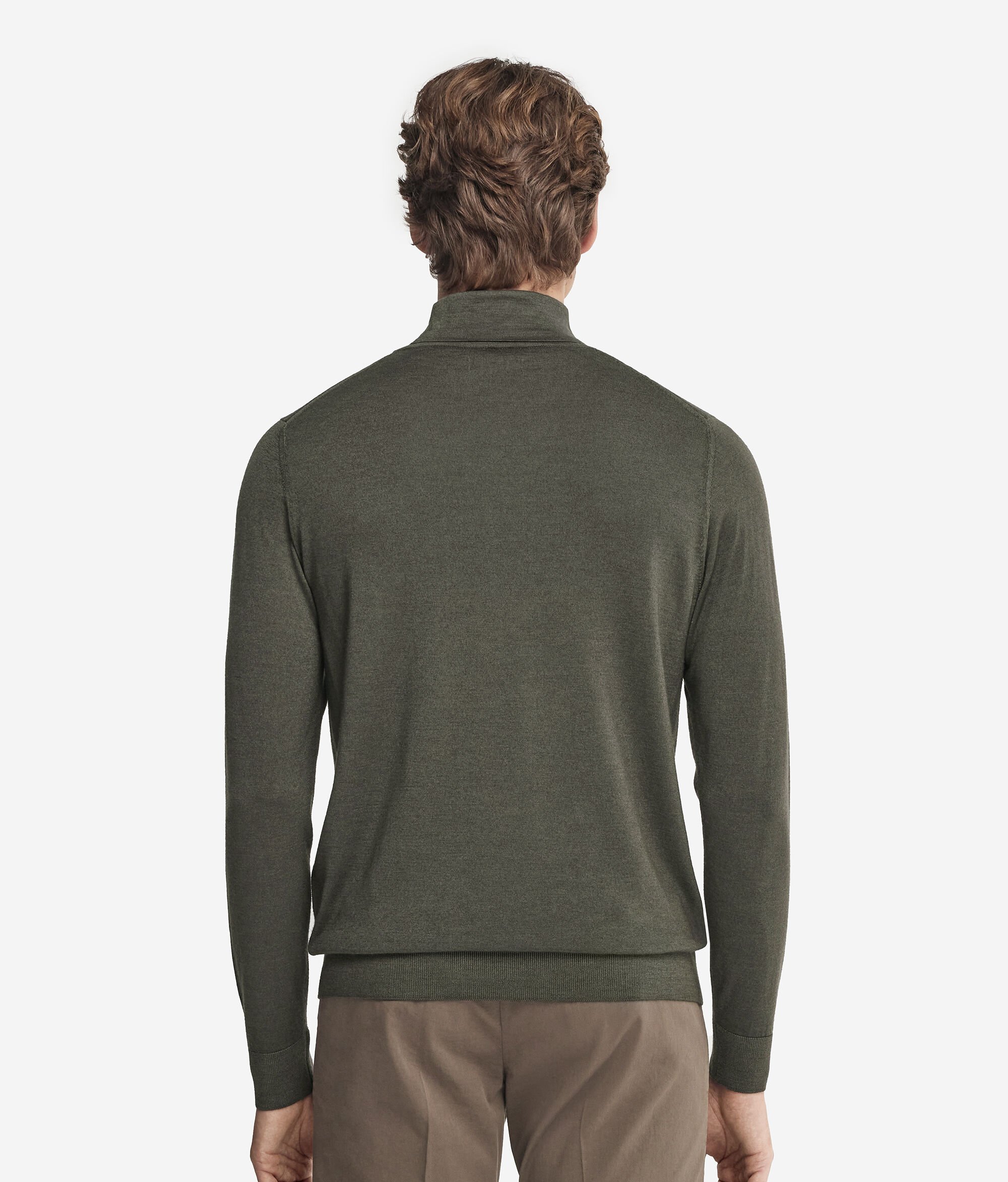 Jersey de cuello vuelto de cashmere ultrafine. Las fibras preciosas confeccionadas hábilmente le confieren a esta prenda un peso ligero pero con cuerpo, ideal para poder llevarla en ocasiones diversas.