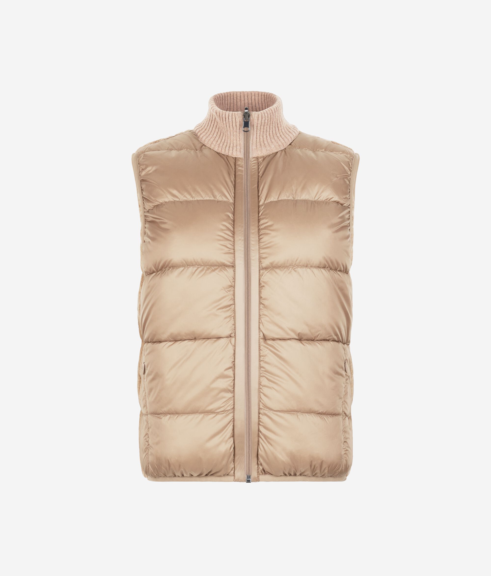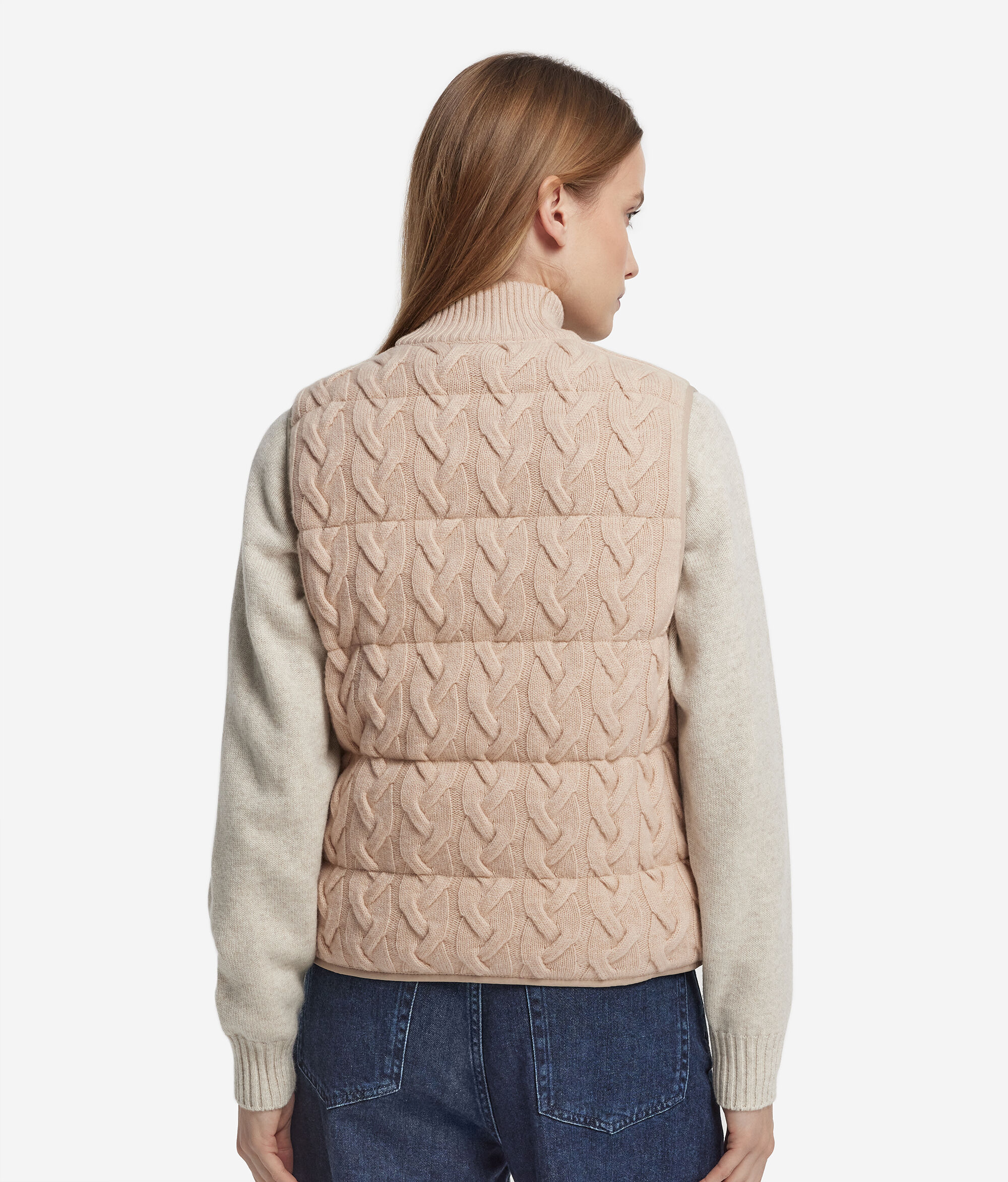 Este plumífero sin mangas con motivo de ochos es una nueva propuesta de la colección otoño-invierno para mujer de Falconeri. El detalle del cuello alto de cashmere ultrasoft embellece el estilo casual de esta prenda con una perfecta combinación de elegancia y funcionalidad. Es reversible, por lo que siempre podrás elegir el estilo que deseas lucir. Ideal para la transición de temporada, ¡añadirá un toque de clase a tus conjuntos!