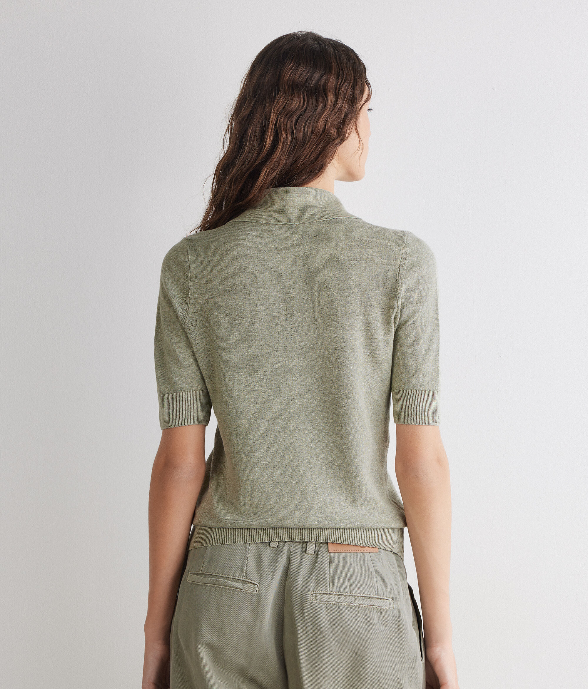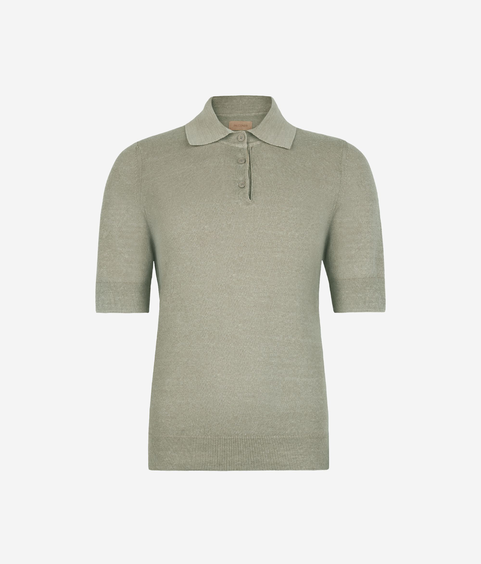 Polo confeccionado en punto de lino y algodón (62% lino, 38% algodón). Este modelo de corte estándar está rematado con detalles de canalé.