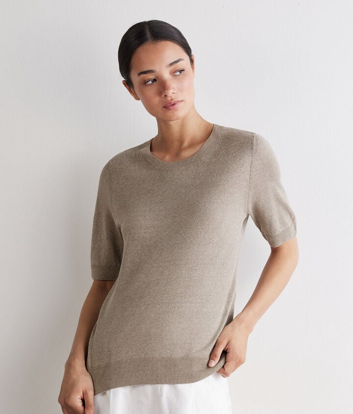 Nouveauté Pull à col rond et manches courtes en cachemire et soie158,00 €Sélectionnez votre couleurNœudPierreBLÉ CHINÉ+ 5Couleur sélectionnée : Nœud