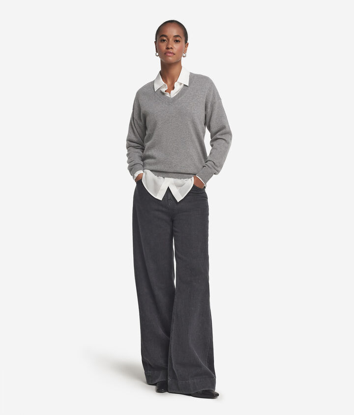 Pull à col V et emmanchures marteau en cachemire ultra-doux
