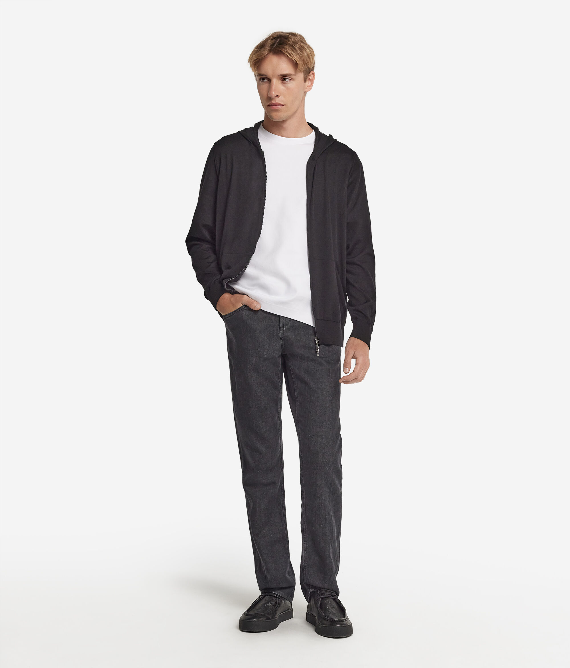 Le sweat zippé, avec son esthétique décontractée et sa touche sport emblématique, est une pièce précieuse à avoir dans sa garde-robe masculine. Idéal pour vos journées de détente, le sweatshirt pour homme Falconeri vous accompagnera dans tous vos loisirs ! Disponible en version à capuche, le hoodie apporte un style plus décontracté et urbain à votre tenue. Associez-le avec un pantalon en cachemire de la même couleur pour un ensemble parfaitement coordonné.