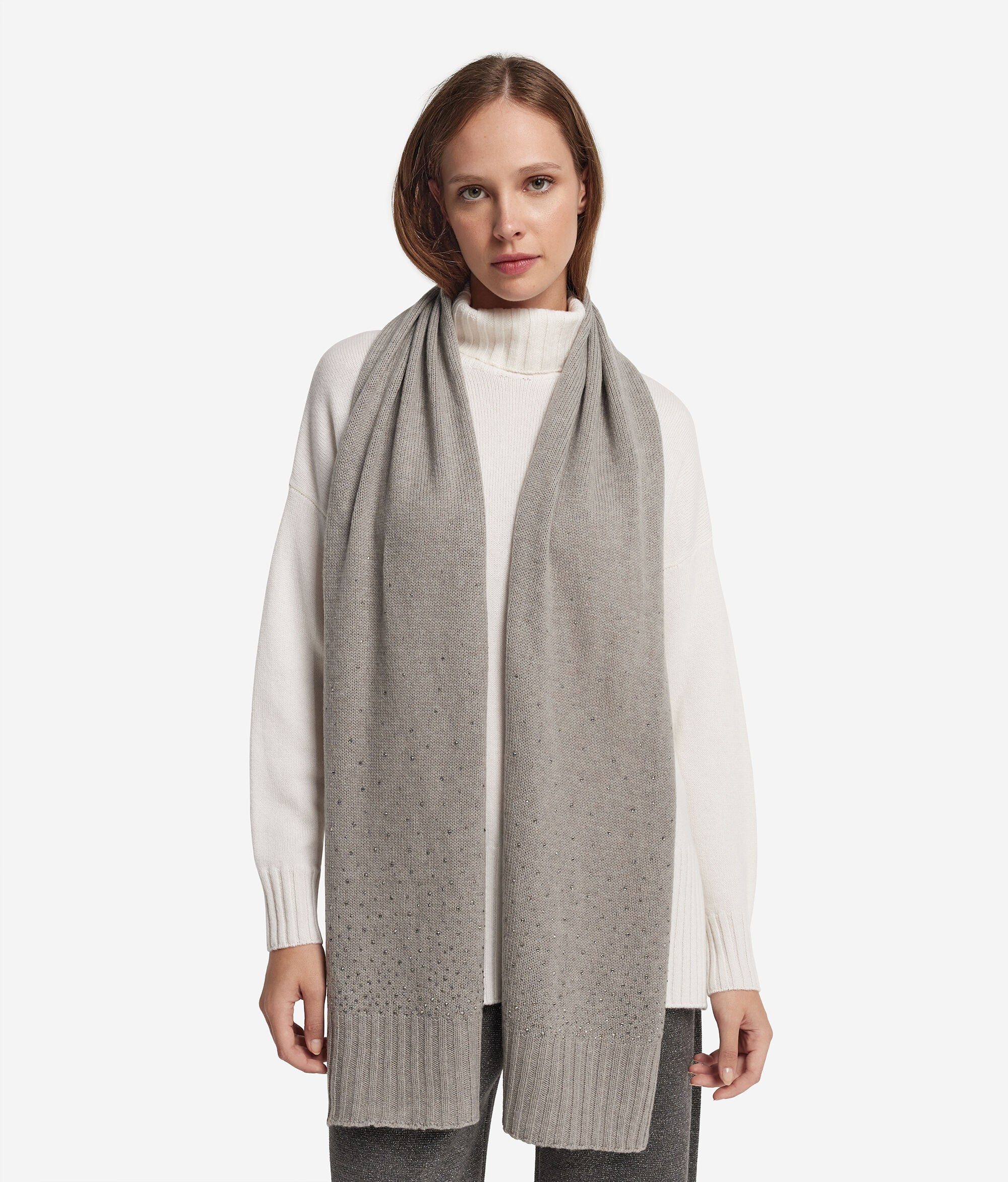 Luxueuse et douillette, cette écharpe en cachemire ultra-doux est l'accessoire idéal pour vous protéger du froid lors des mois d'hiver. Un élégant dégradé de strass aux extrémités capture la lumière, pour ajouter une touche raffinée étincelante et unique à vos tenues.
