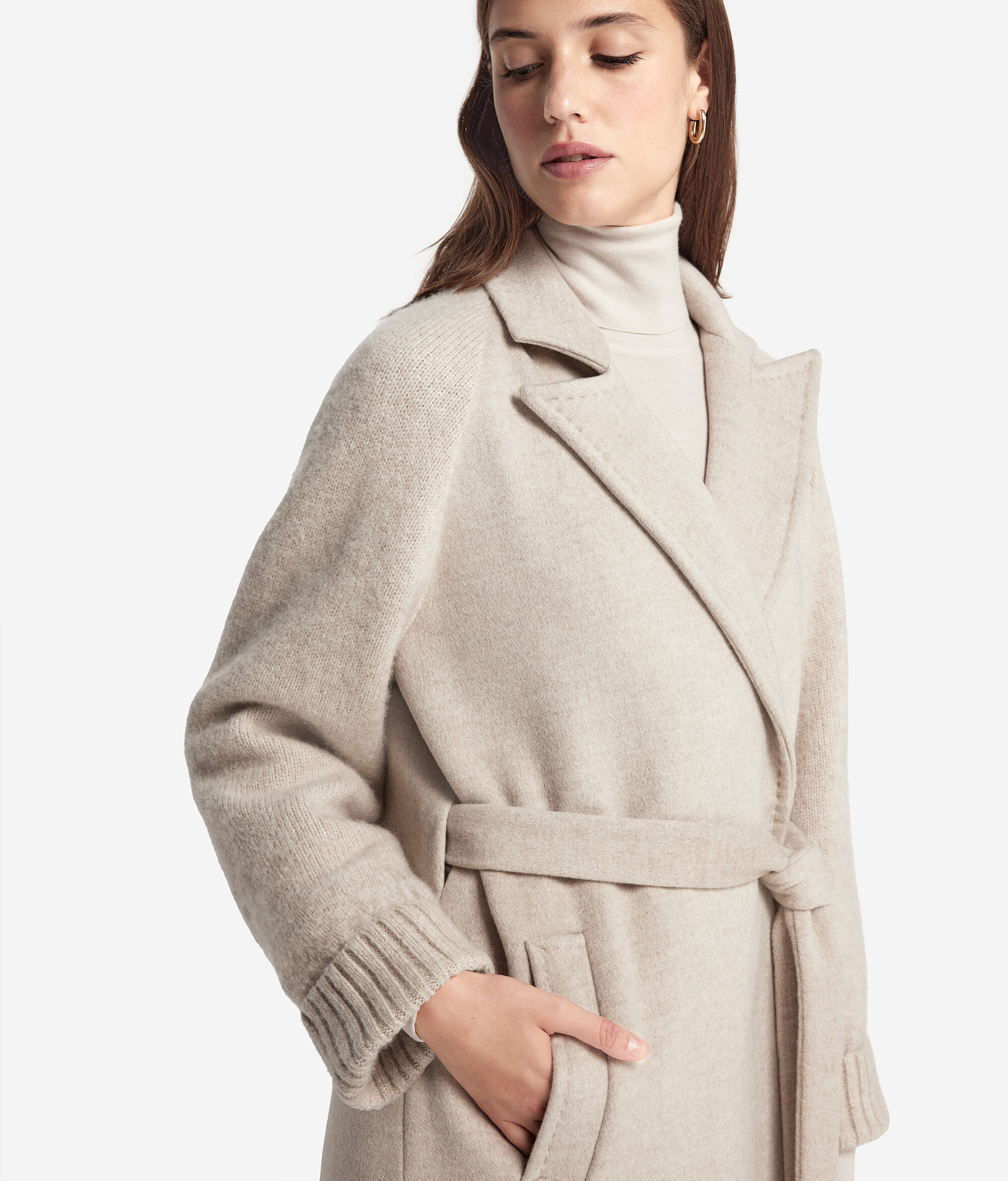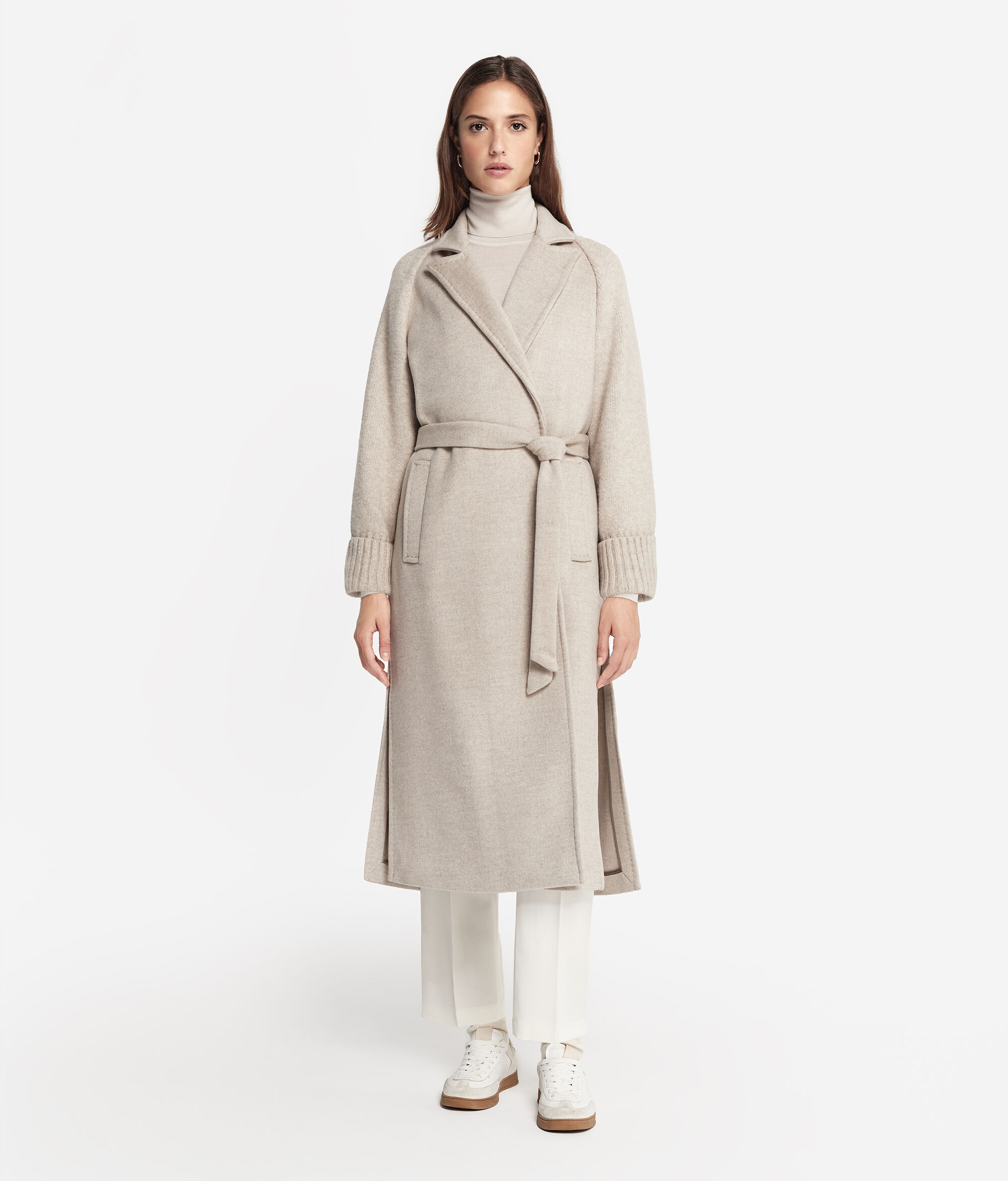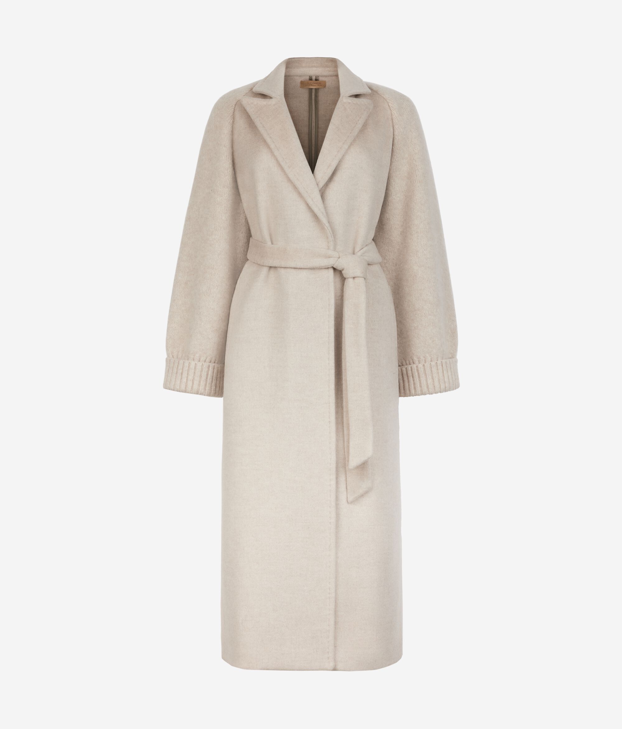 Ce manteau en tissu de cachemire est une pièce indispensable à toute garde-robe alliant style et qualité. Il se caractérise par un col à revers et des manches en maille douce. Sa fermeture avec ceinture souligne le tour de taille et élance la silhouette. Des fentes latérales et des manches raglan lui confèrent un effet de mouvement fluide. Long jusqu'à la cheville, c'est le modèle idéal pour se distinguer avec élégance en toute occasion.