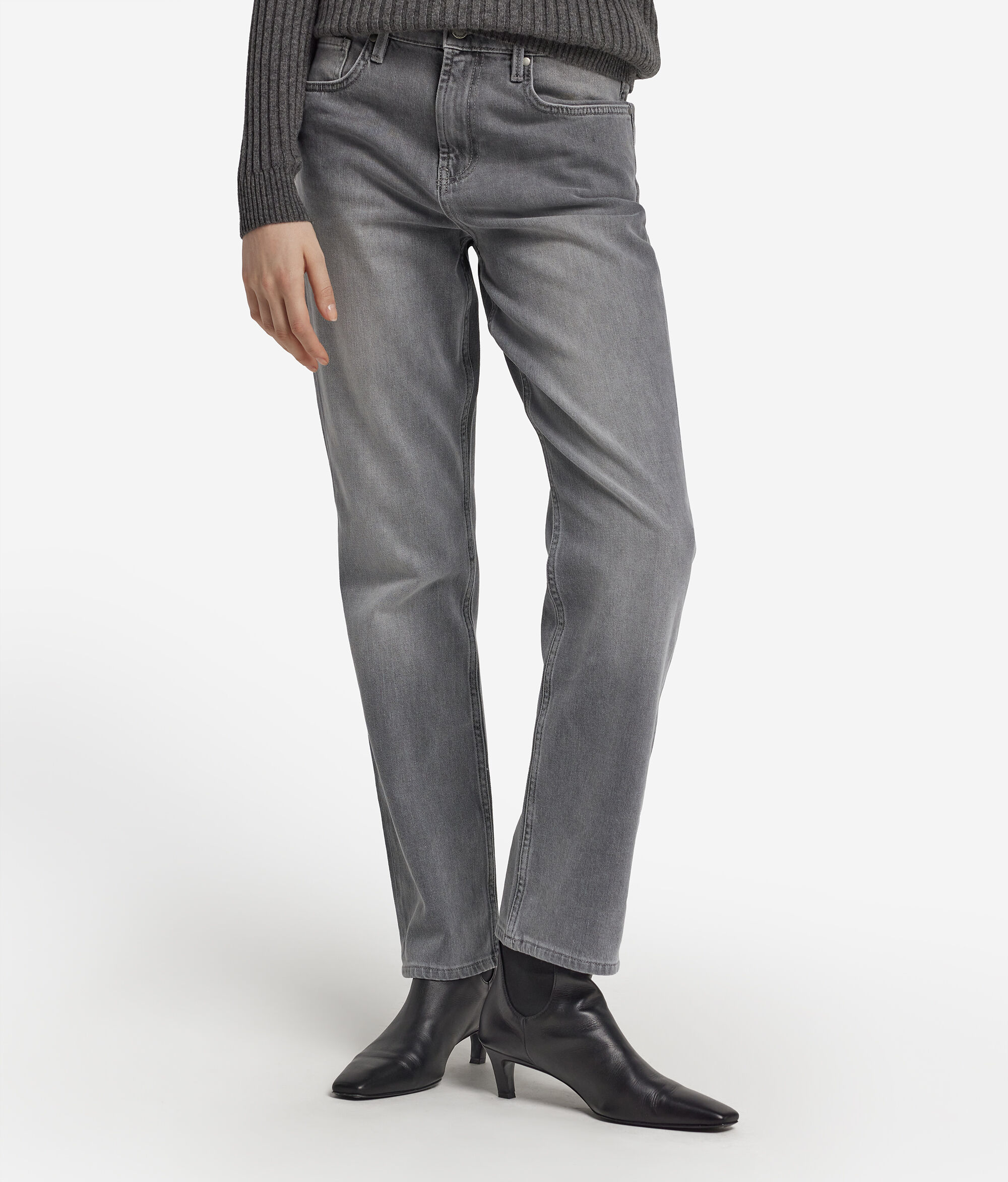 • Pantalon cigarette en denim de coton et cachemire