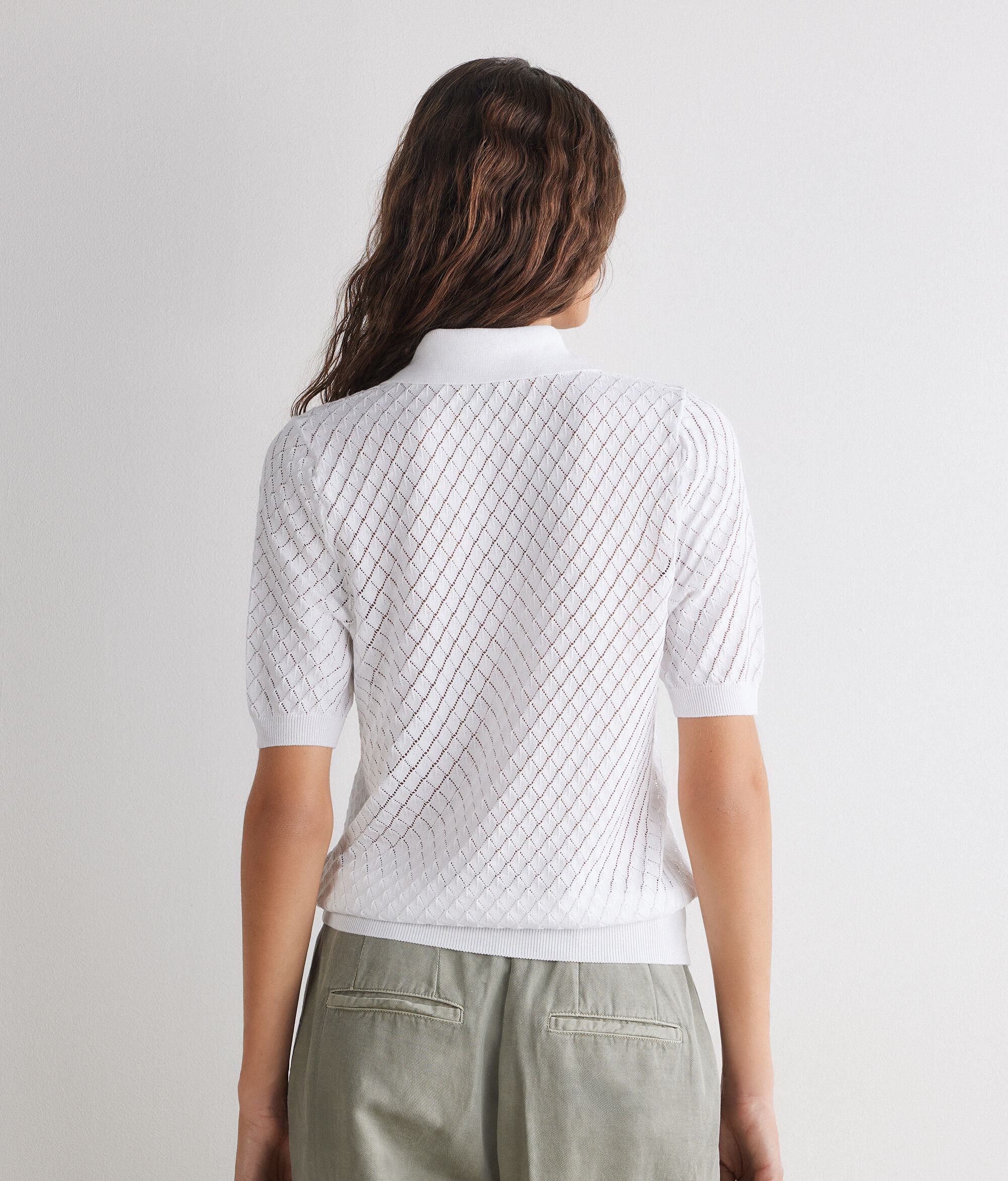 Polo en maille ajourée à losanges