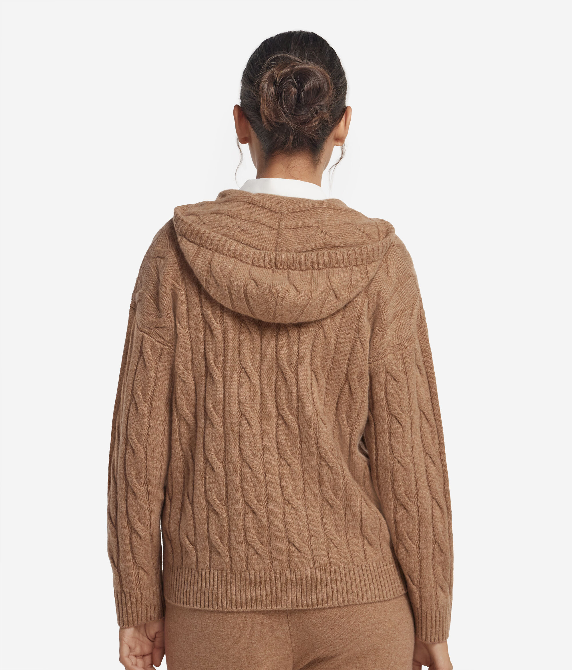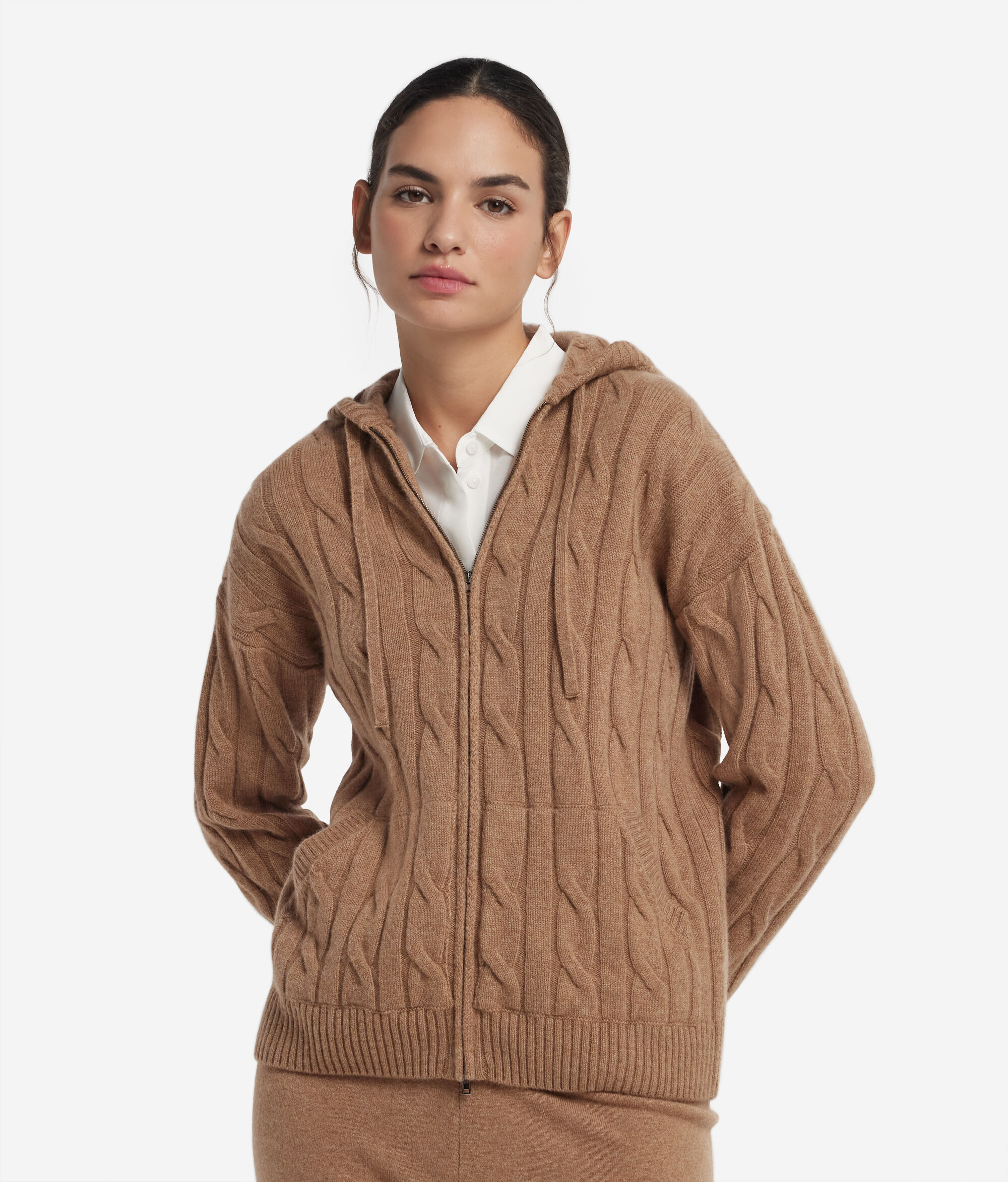Sweatshirt avec fermeture éclair et motif à torsades en cachemire ultra-doux mouliné