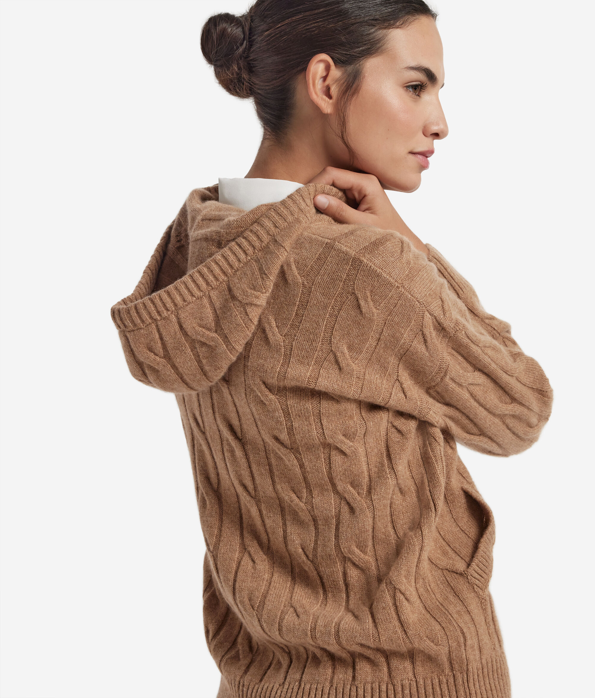 Ce sweatshirt en prestigieux cachemire ultra-doux allie des lignes décontractées à des détails d'inspiration nordique. Un tricot à torsades traditionnel confère à ce modèle une texture en relief au toucher tridimensionnel. Chaud et doux, il est rehaussé d'une fermeture éclair ainsi que de délicates finitions côtelées sur la capuche et les poches. Des emmanchures basses et des lignes fluides garantissent une coupe décontractée naturelle, idéale pour défier avec style les journées les plus fraîches.