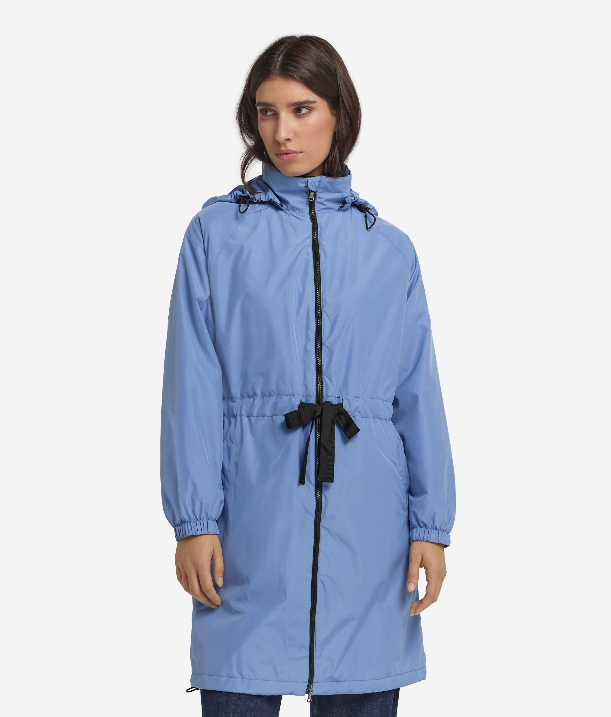 • Trench technique à capuche et zip centré. Ce modèle est sublimé par une matière coupe-vent et imperméable à l'extérieur, et par une doublure en cachemire chaud à l'intérieur. Ce modèle est doté d'un cordon coulissant à la taille et sur le bas et de poches avant passepoilées. La coupe est fluide.