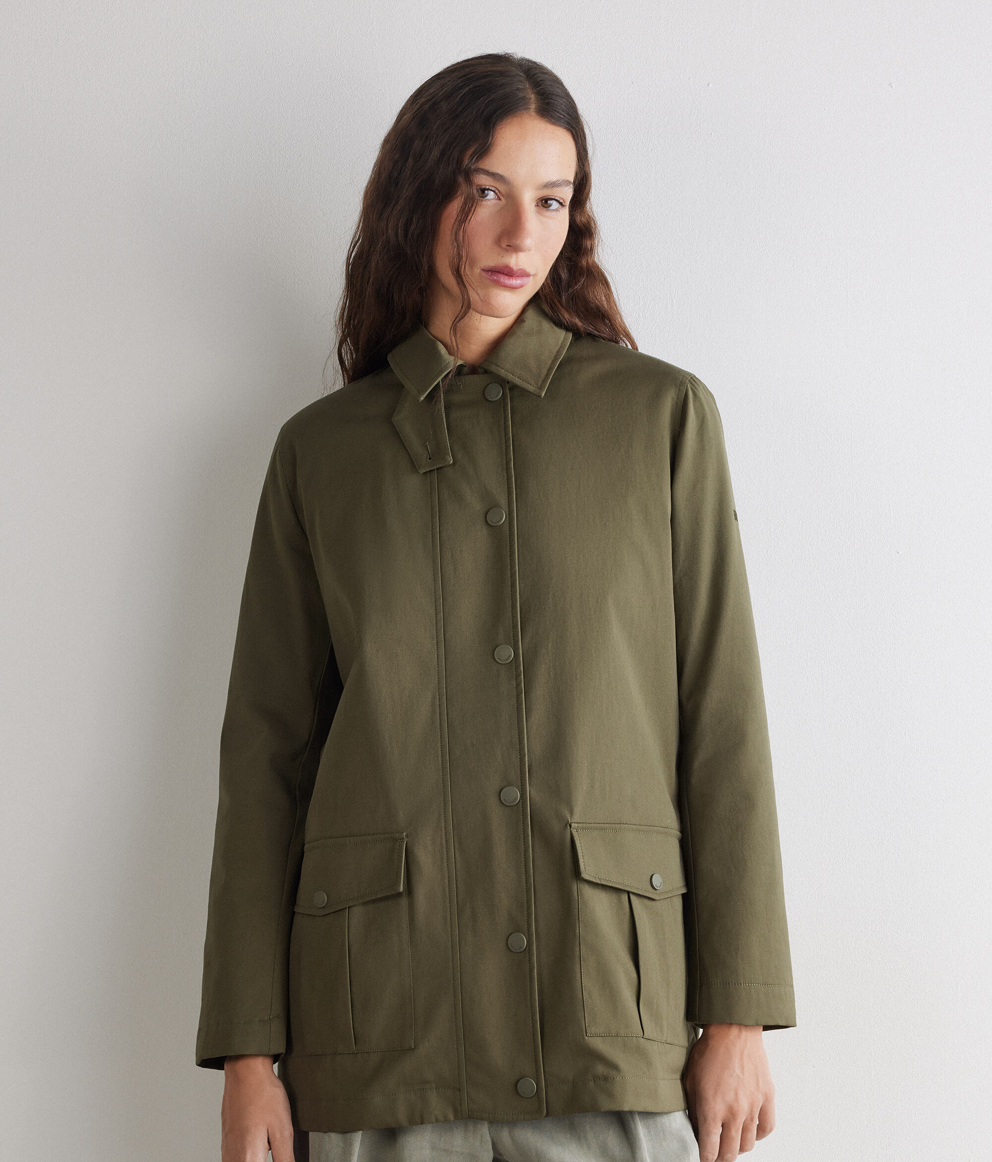 Veste technique en coton déperlant avec intérieur en cachemire ultra-fin, pour un équilibre parfait entre confort et protection. Des éléments fonctionnels, tels que la fermeture éclair et le bouton-pression, la bride sous le menton et les poches plaquées, subliment le style polyvalent et contemporain de ce modèle.