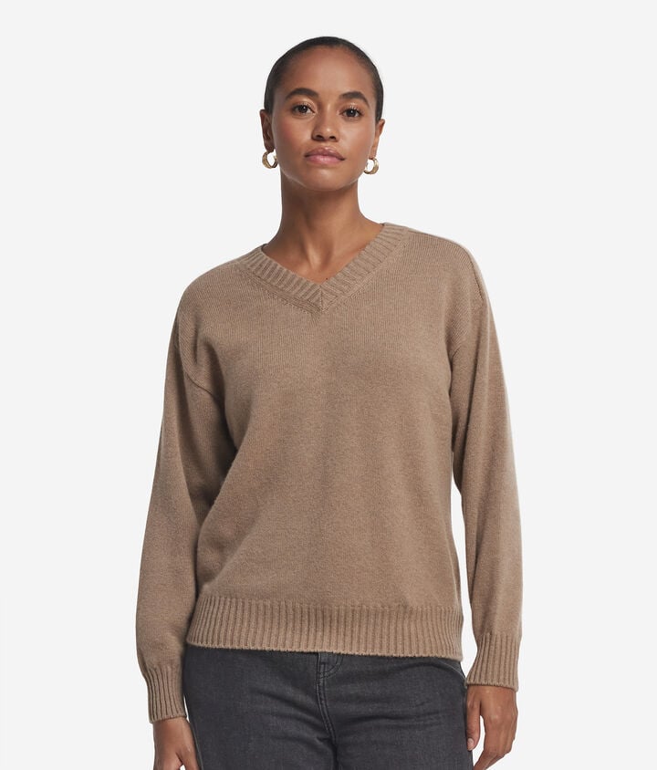 Μπλούζα με λαιμόκοψη V από cashmere με σκισίματα