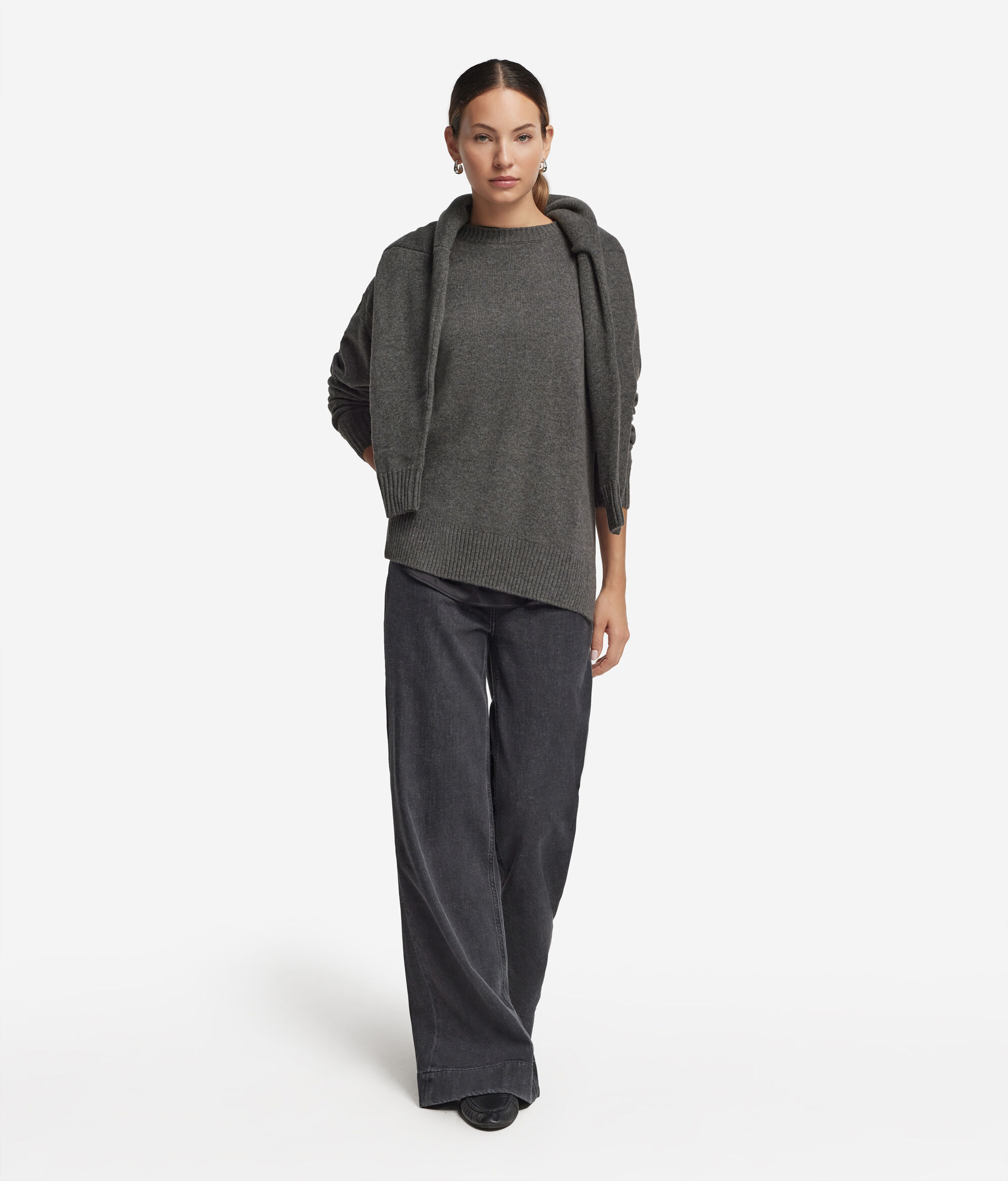Μπλούζα με Στρογγυλή Λαιμόκοψη από Cashmere με σκισίματα