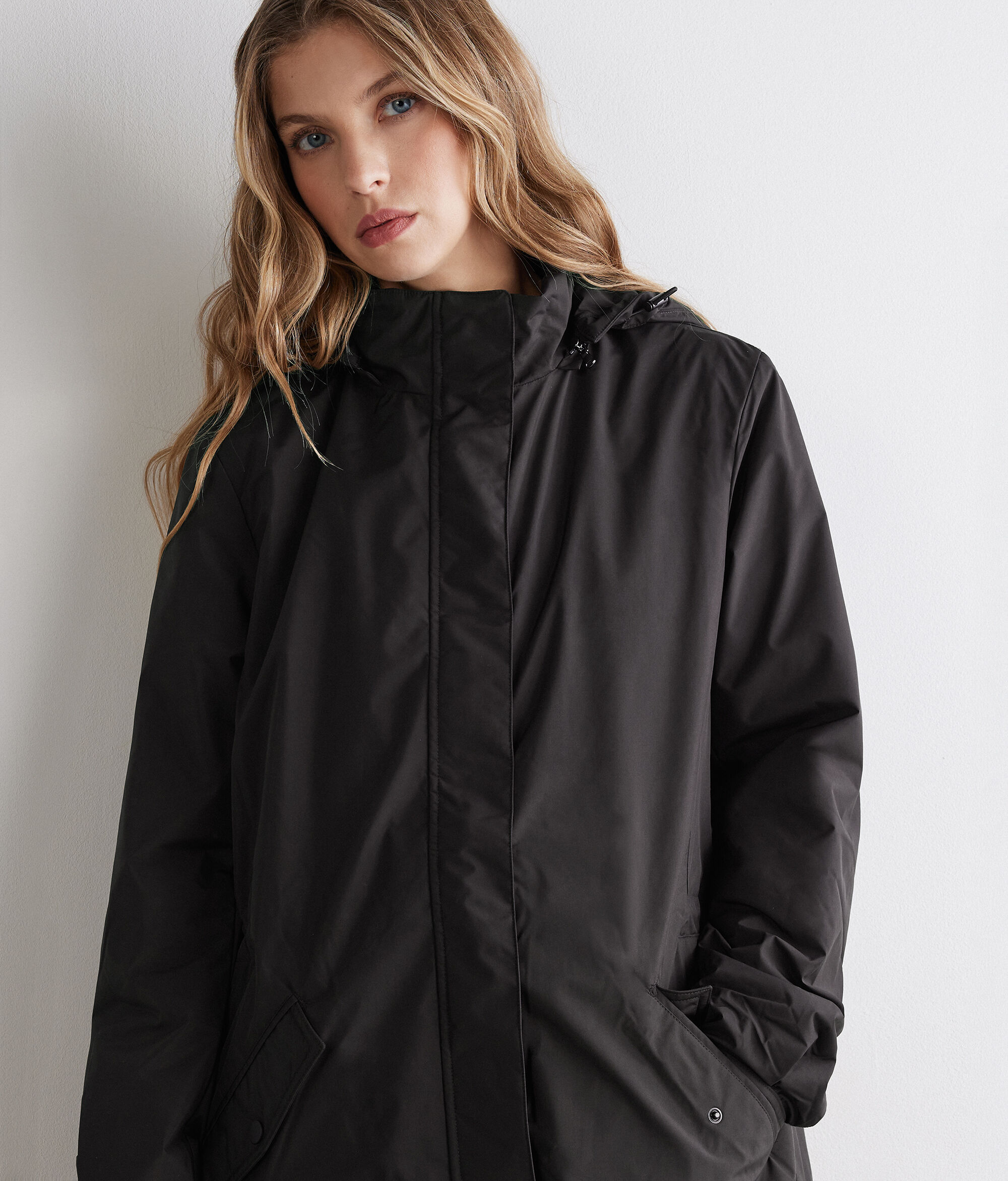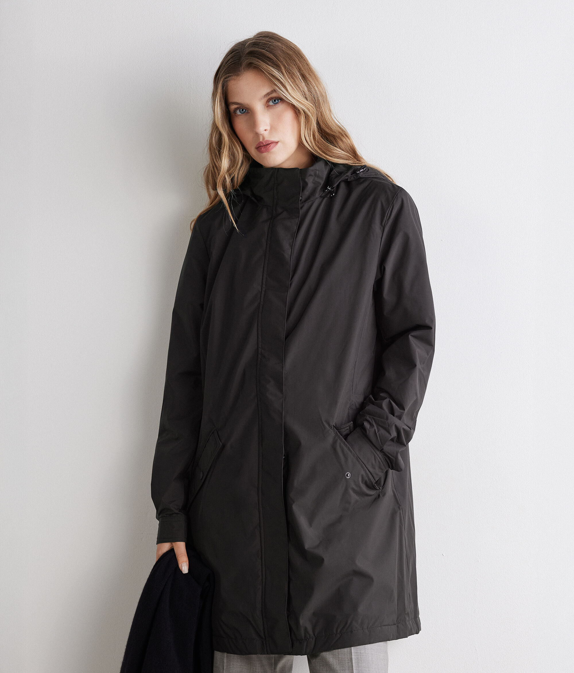 Long Technical Jacket with Drawstring