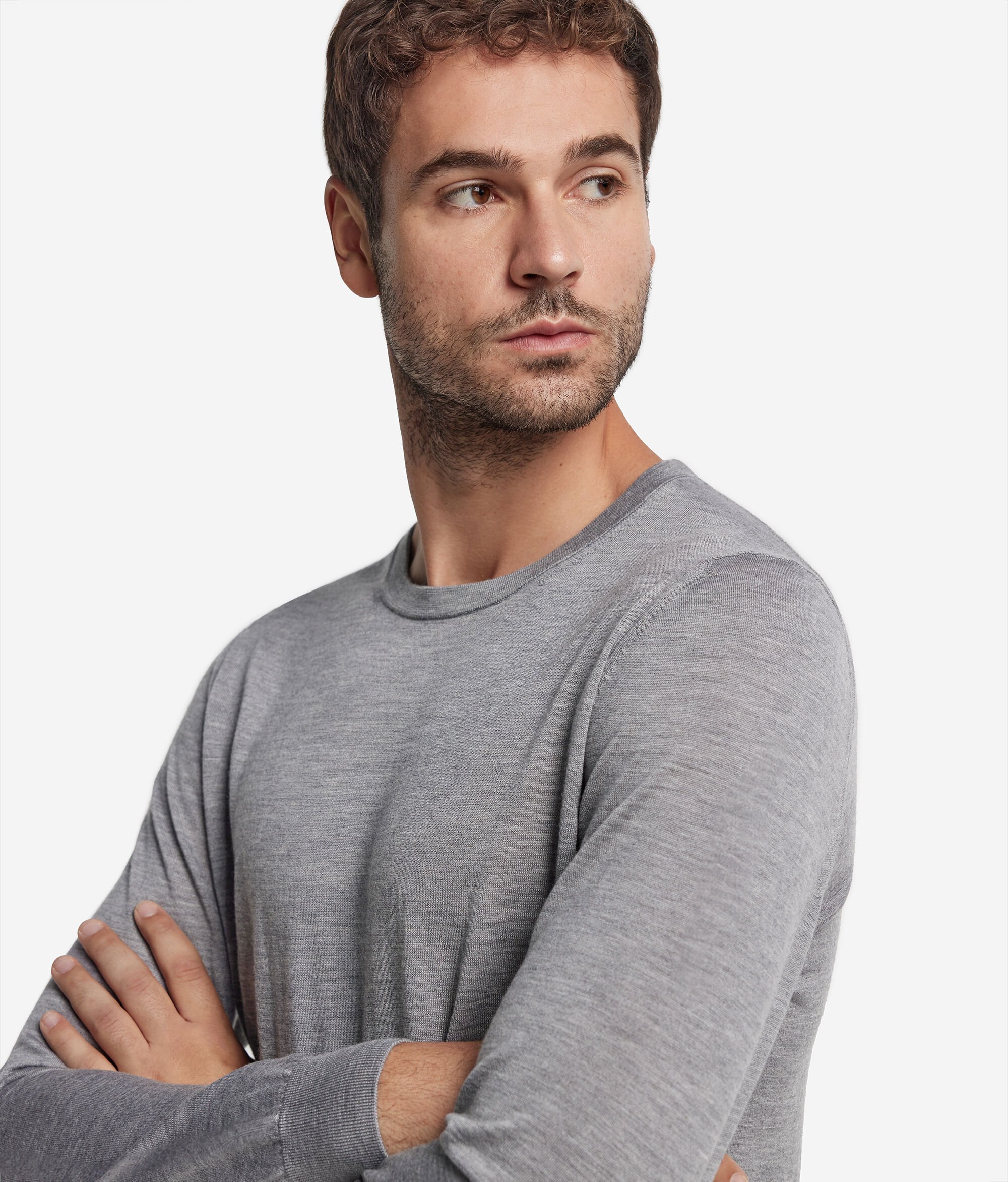 The natural ultrafine cashmere fibre enhances the timeless style of this crew neck sweater. Soft and exquisitely light on the skin, it offers a perfect balance between lightness and a warm embrace. Versatile and elegant, this is an essential garment in a man’s wardrobe, ideal to wear alone or under a jacket for a refined look on any occasion