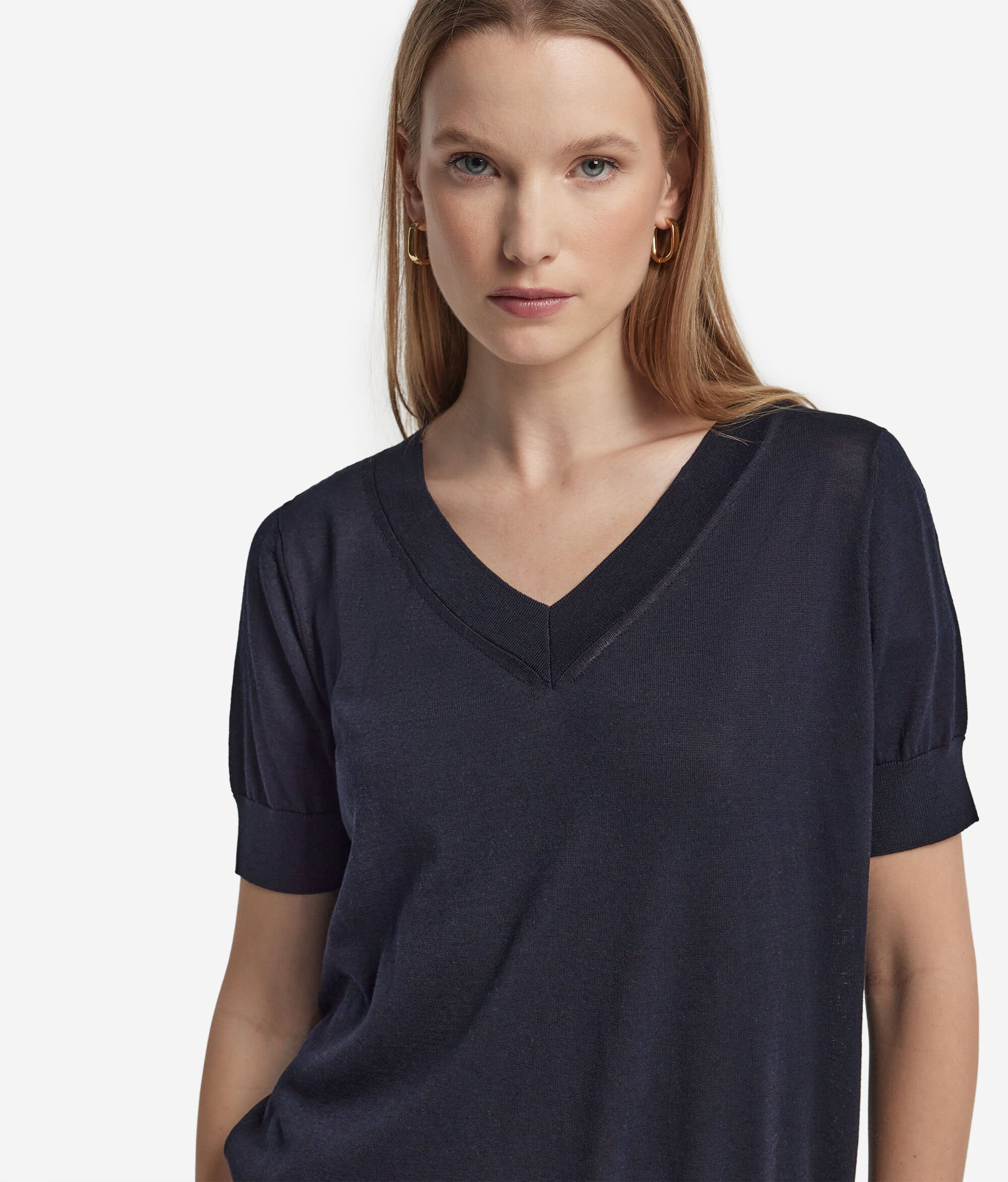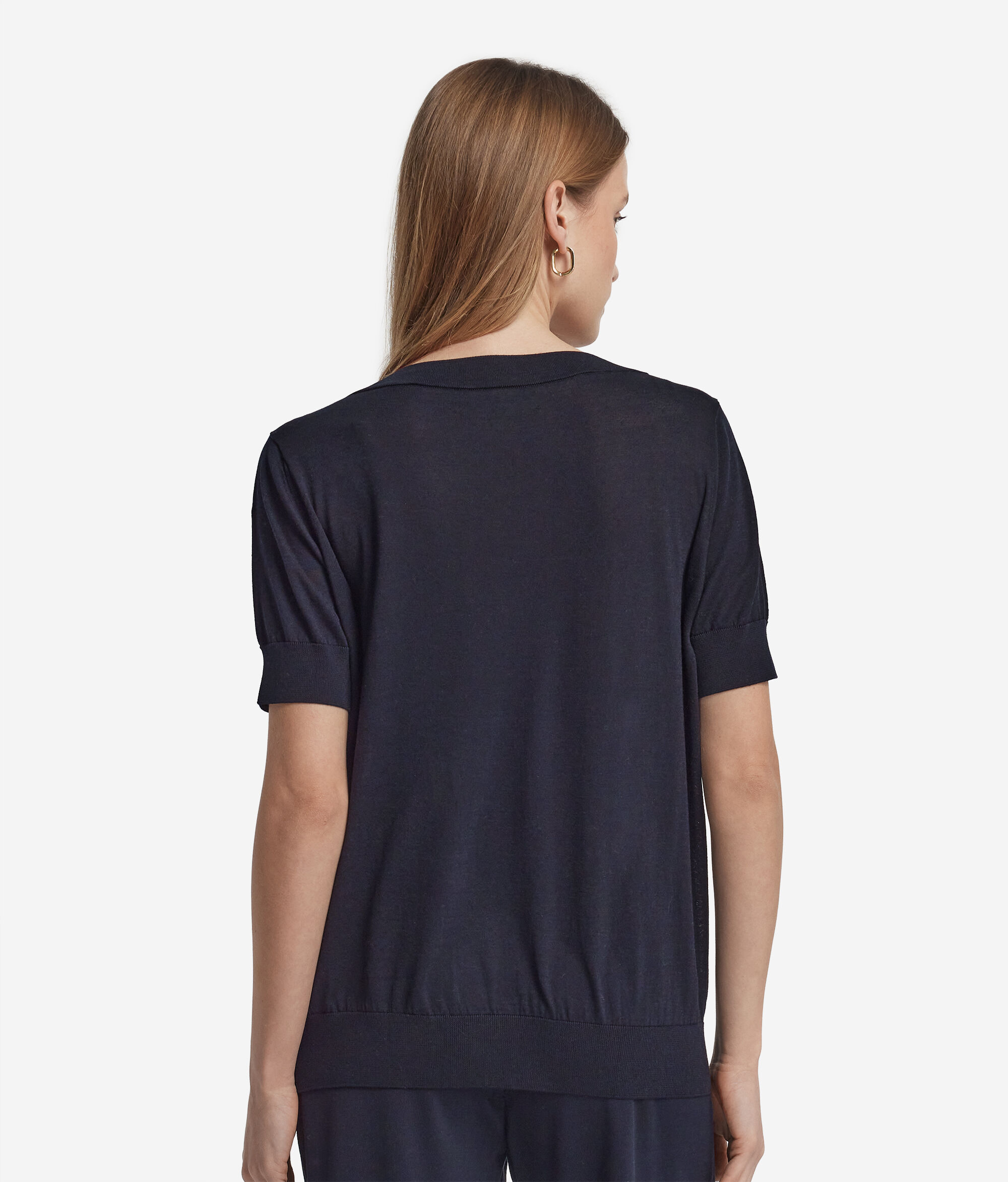 Short-Sleeved V-Neck Silk and Cotton Jumper