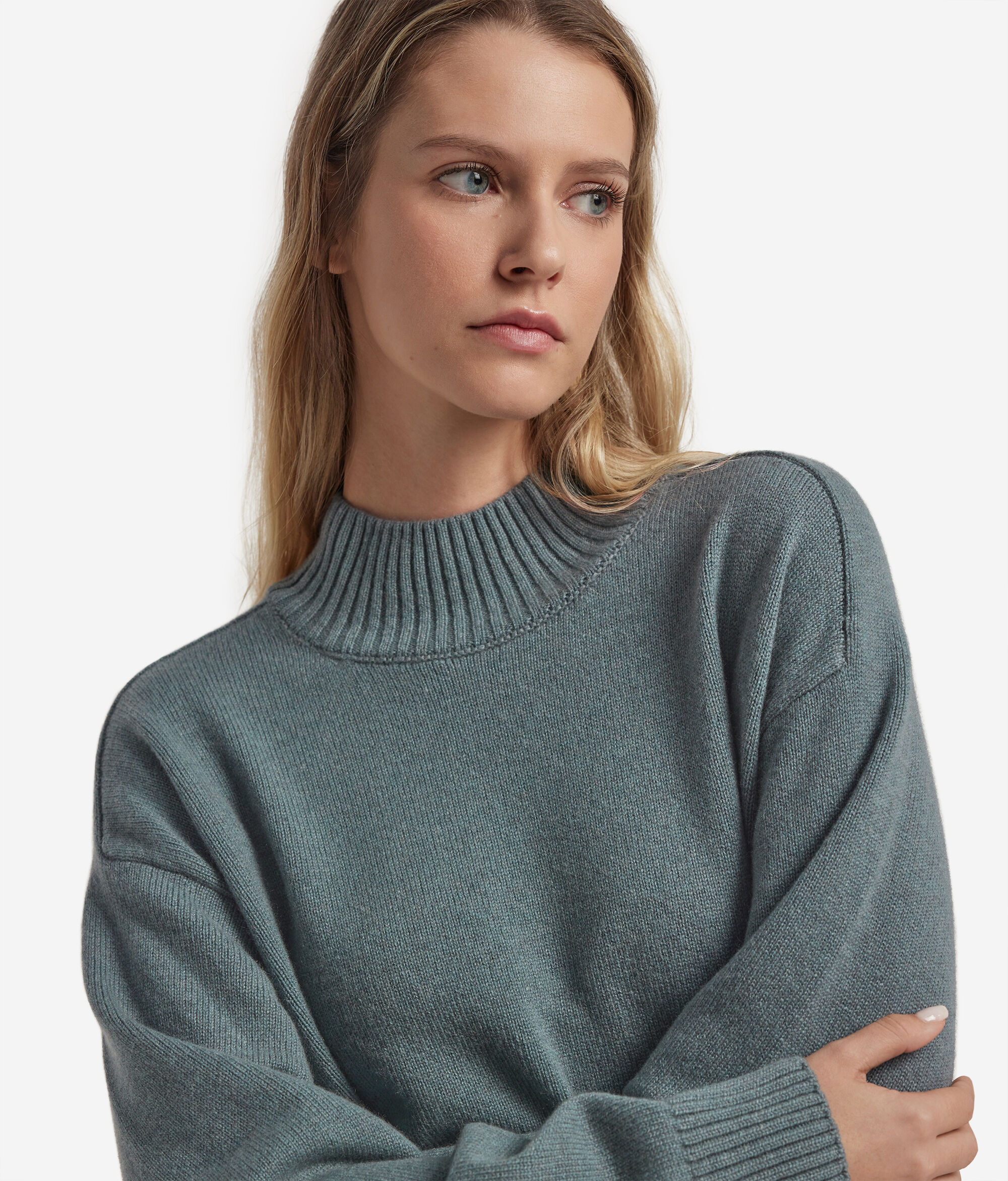 Luxurious yarns and feminine details unite in perfect harmony in this turtleneck made from ultrasoft cashmere. The dropped set-in sleeves emphasise the relaxed fit of the garment, complete with ribbed trim that gives a touch of informal elegance.