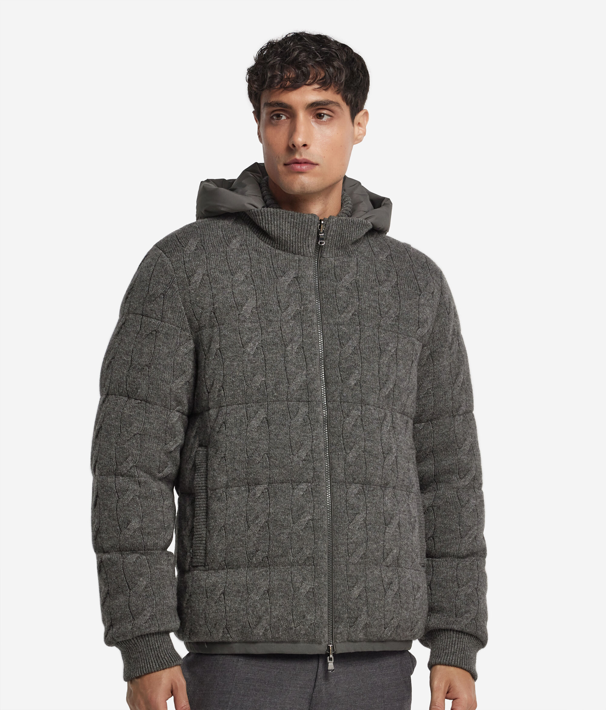 Μπουφάν διπλής όψης με πλεξίδες από cashmere