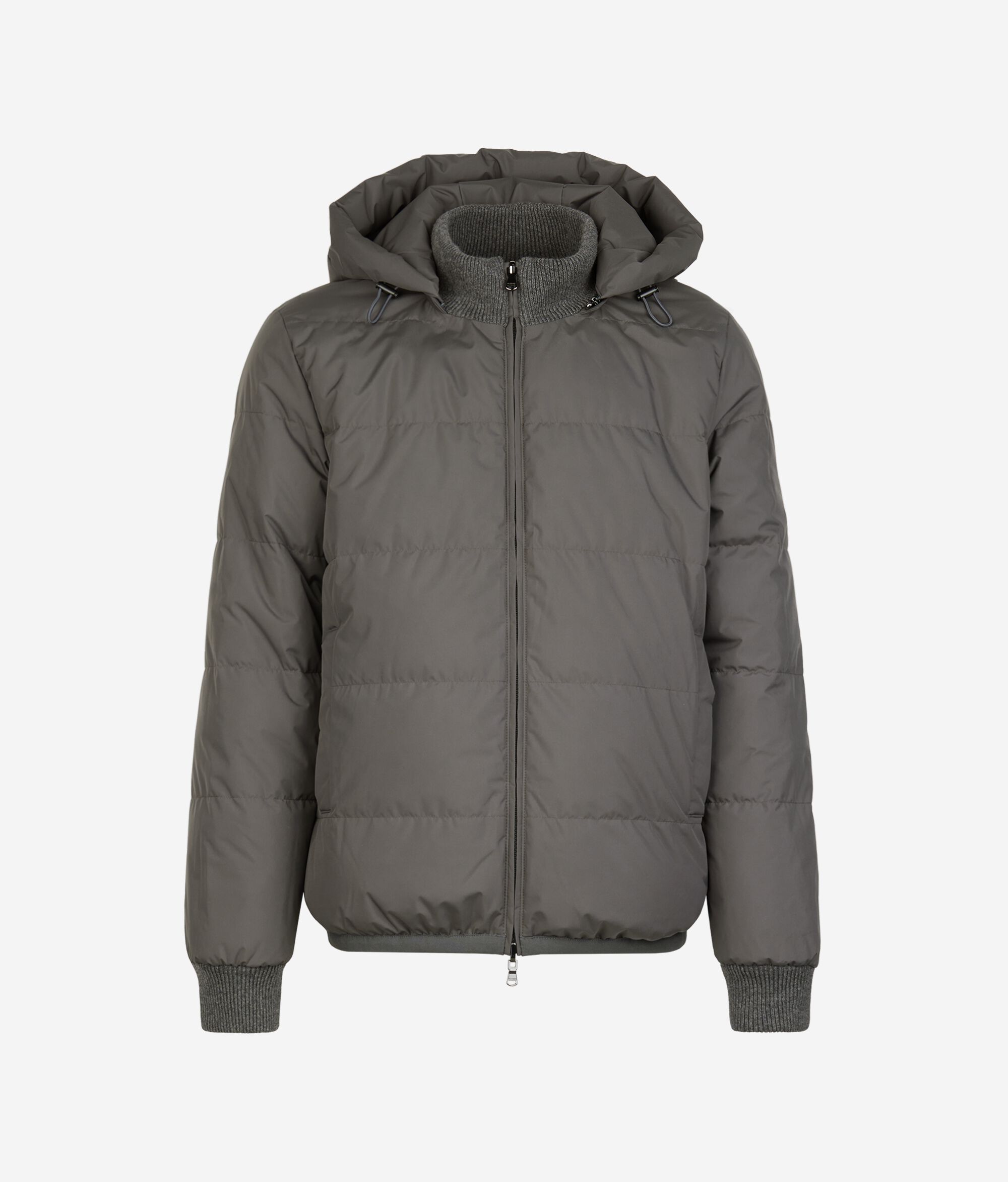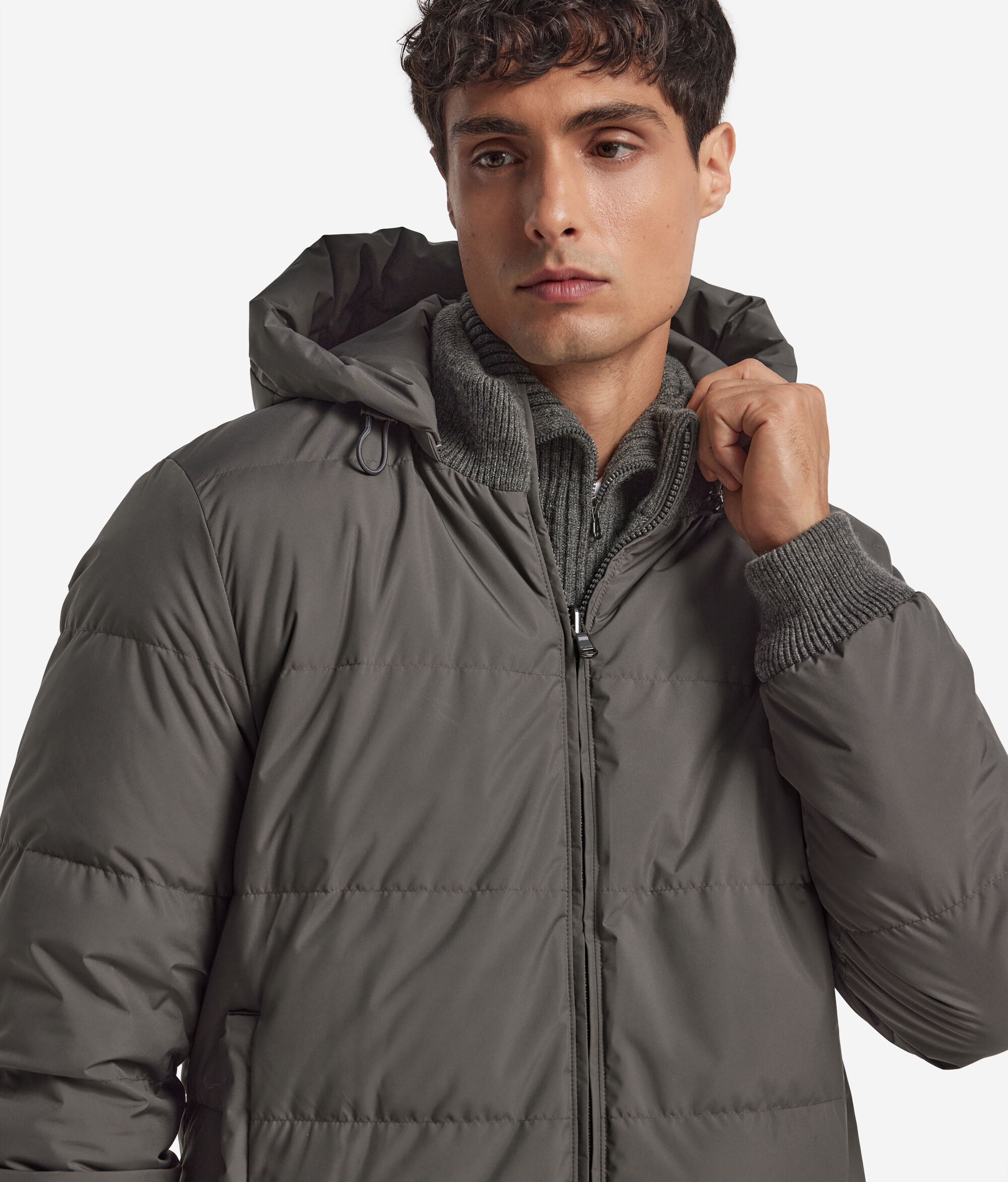 Άνετο και εκλεπτυσμένο, αυτό το μπουφάν συνδυάζει την απαλότητα του Ultrasoft Cashmere με τη λειτουργικότητα του τεχνικού υφάσματος. Είναι διπλής όψης, διαθέτει μια πλευρά με πλεκτό σχέδιο πλεξίδες και καπιτονέ εσωτερικό με επένδυση από πούπουλα που εξασφαλίζει ζεστασιά και ανάλαφρη αίσθηση. Η κουκούλα από τεχνικό ύφασμα, το φερμουάρ διπλής όψης και οι ρελιαστές τσέπες με ριμπ ύφανση το κάνουν ιδιαίτερα ευκολοφόρετο. Με χαλαρή εφαρμογή, αποτελεί την τέλεια ισορροπία μεταξύ κομψότητας και προστασίας τις πιο δροσερές μέρες.
