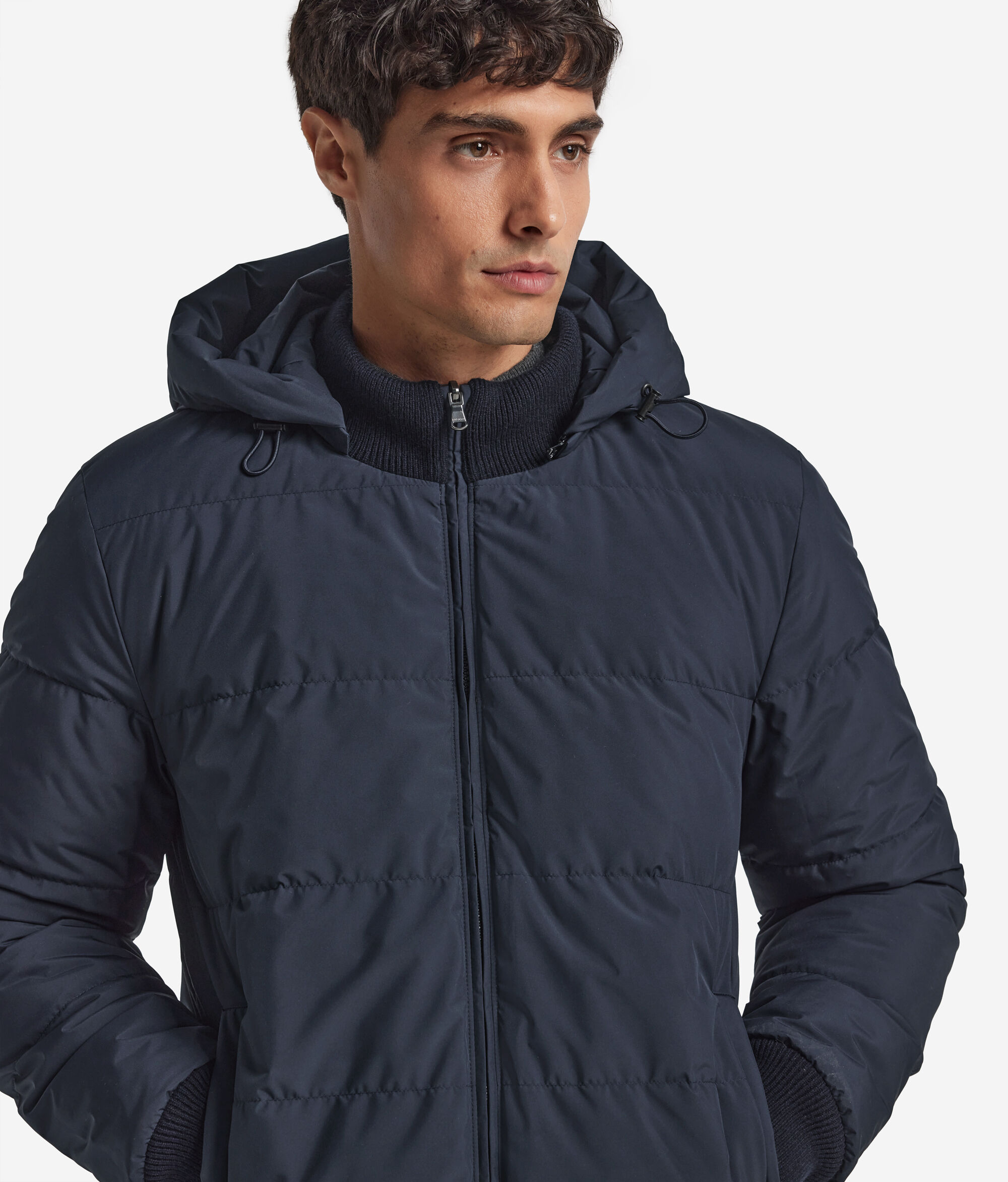 Άνετο και εκλεπτυσμένο, αυτό το μπουφάν συνδυάζει την απαλότητα του Ultrasoft Cashmere με τη λειτουργικότητα του τεχνικού υφάσματος. Είναι διπλής όψης, διαθέτει μια πλευρά με πλεκτό σχέδιο πλεξίδες και καπιτονέ εσωτερικό με επένδυση από πούπουλα που εξασφαλίζει ζεστασιά και ανάλαφρη αίσθηση. Η κουκούλα από τεχνικό ύφασμα, το φερμουάρ διπλής όψης και οι ρελιαστές τσέπες με ριμπ ύφανση το κάνουν ιδιαίτερα ευκολοφόρετο. Με χαλαρή εφαρμογή, αποτελεί την τέλεια ισορροπία μεταξύ κομψότητας και προστασίας τις πιο δροσερές μέρες.