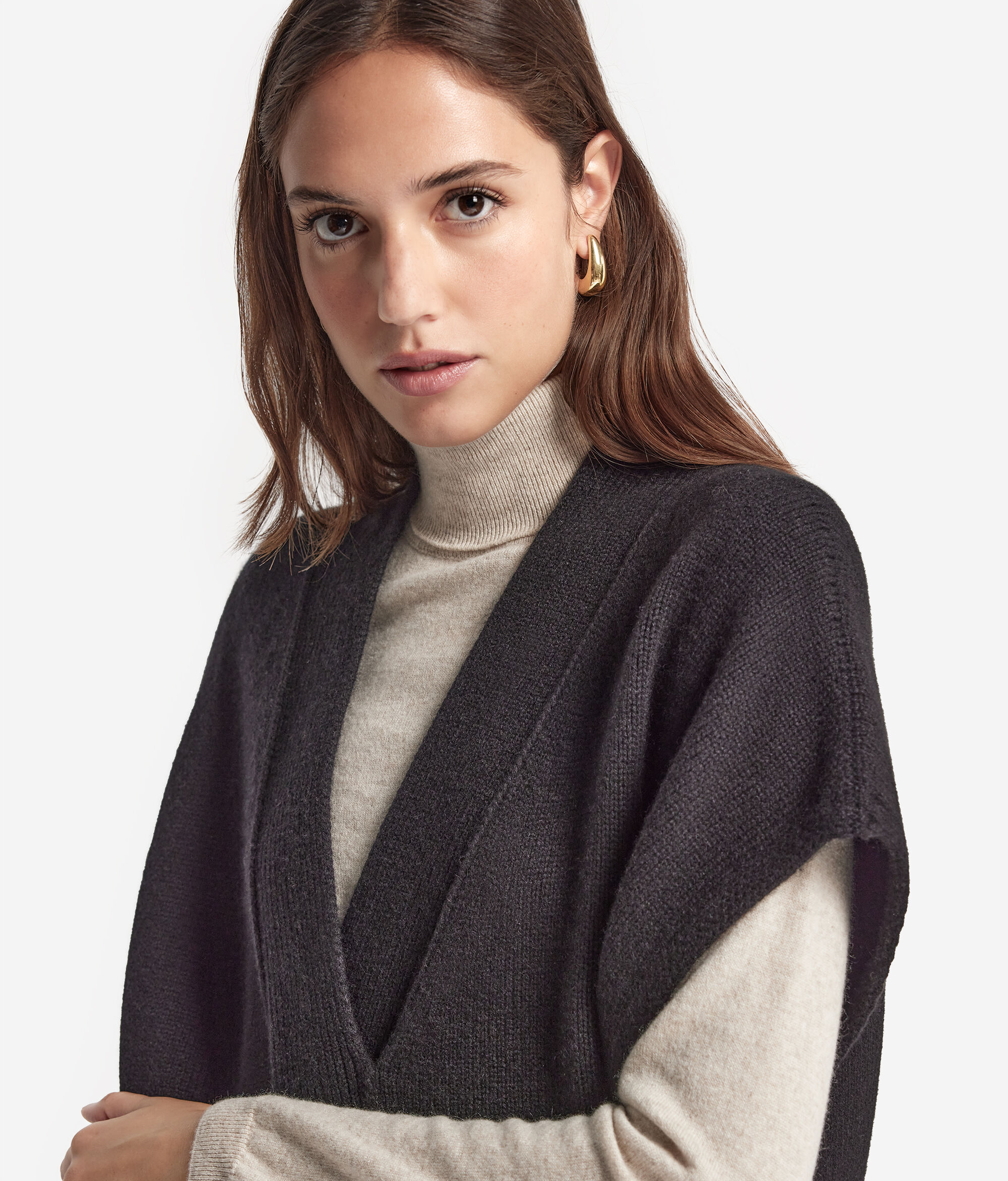 Οι χαλαρές γραμμές και οι λεπτομέρειες σκανδιναβικής έμπνευσης συνδυάζονται σε αυτήν τη αμάνικη κάπα από απαλό Ultrasoft Cashmere. Ο σχεδιασμός ξεχωρίζει χάρη σε ένα κρουαζέ κλείσιμο μπροστά, που όχι μόνο προσθέτει δυναμισμό στην υφή της κάπας αλλά τονίζει και την φινέτσα της γραμμής της. Η χαλαρή εφαρμογή χαρίζει μοντέρνα και εκλεπτυσμένη εμφάνιση, ιδανική για να αναδεικνύει κάθε ντύσιμο με μια πινελιά casual και άνετης κομψότητας.