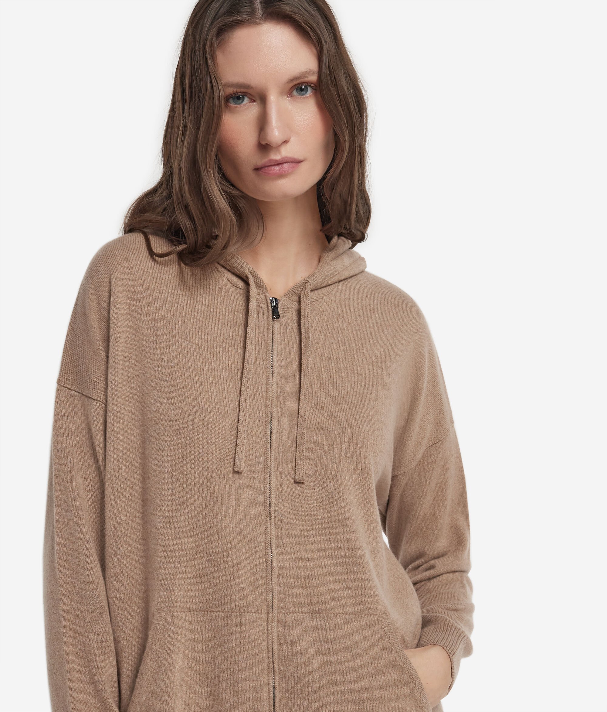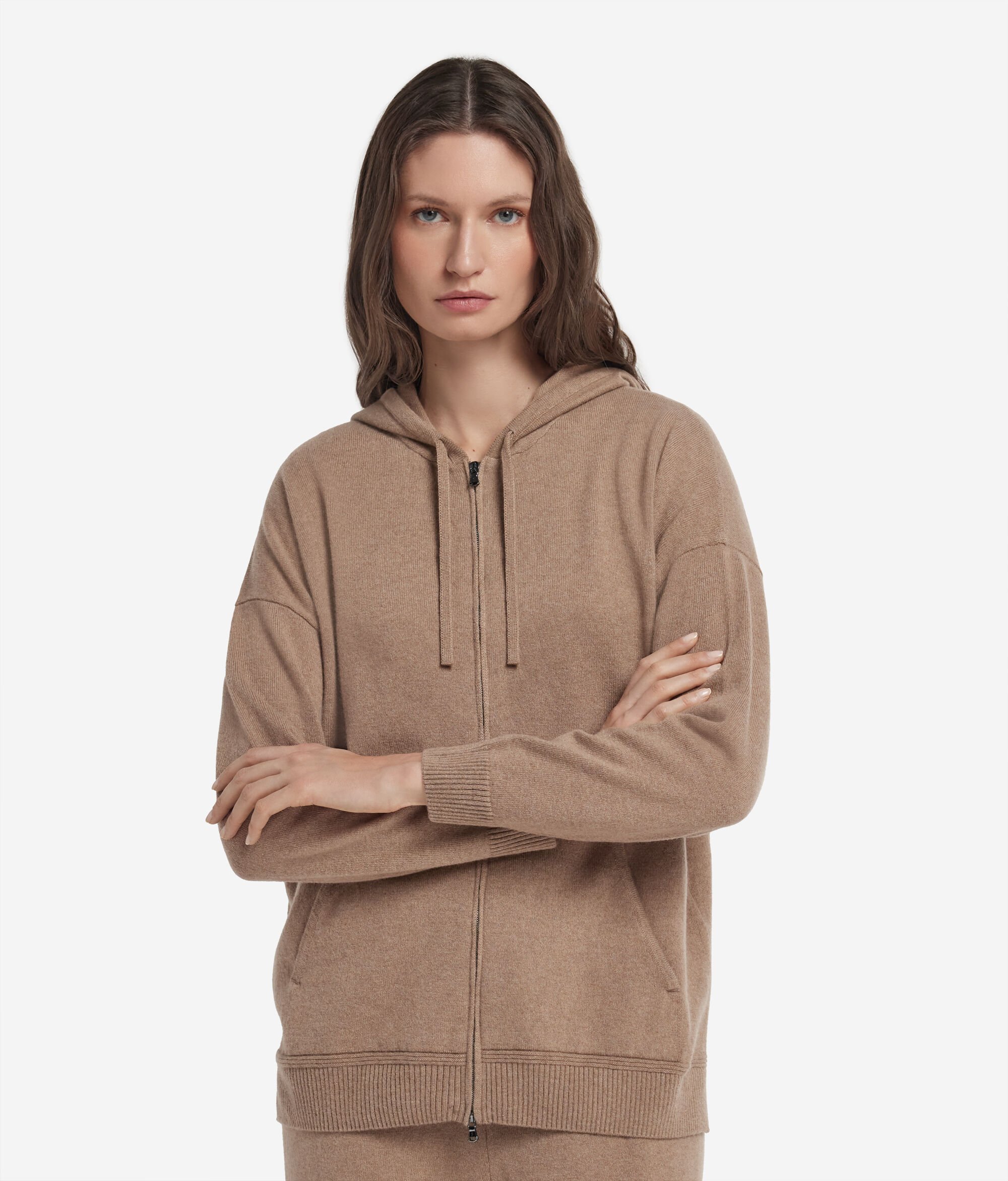 Το εξαιρετικής ποιότητας ultrasoft cashmere συναντά το σπορ στυλ των ρούχων για τον ελεύθερο χρόνο και τη χαλάρωση. Οι χαλαρές γραμμές και η άνετη εφαρμογή αυτού του φούτερ με κουκούλα συνδυάζονται με ένα εκλεπτυσμένo casual στυλ που αναδεικνύει τα αγαπημένα εμβληματικά υλικά του brand.