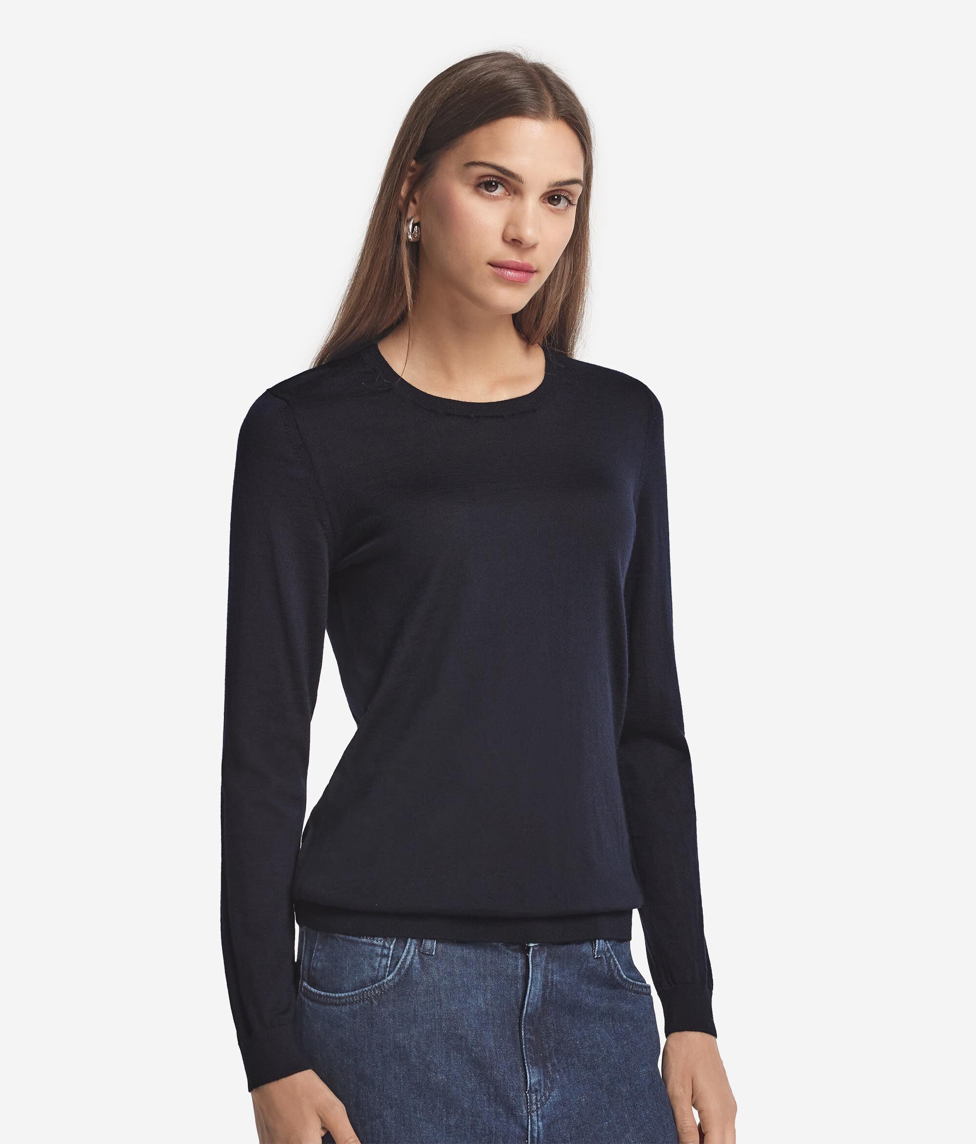 Klasičan i esencijalan, ovaj pulover s okruglim izrezom izrađen je od ultrafinog kašmira. Dizajn se ističe zahvaljujući blago zaobljenom donjem dijelu. Regularni kroj je dizajniran tako da udobno pristaje vašim oblinama, osiguravajući besprijekoran izgled.
