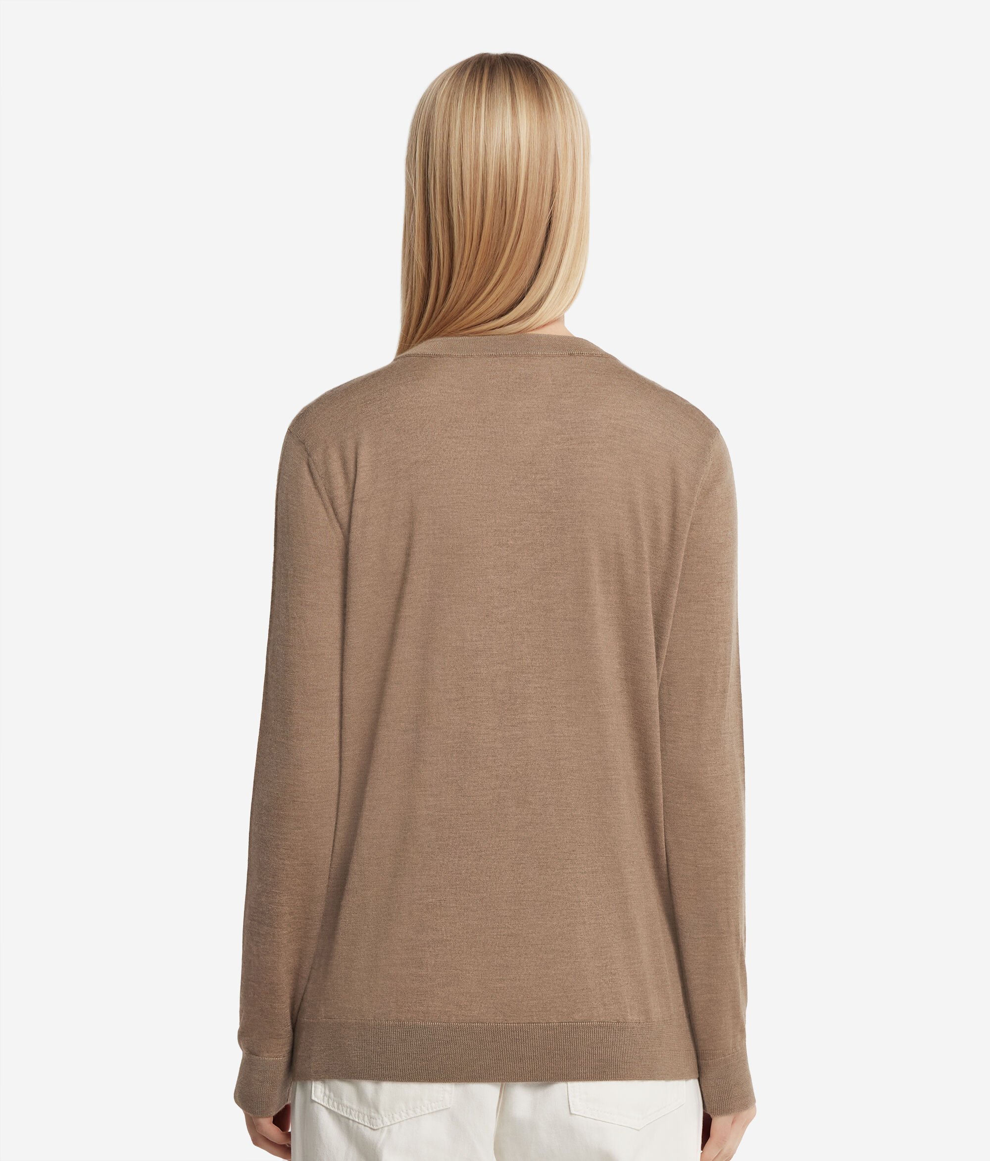 Dodajte luksuz i udobnost u svoju garderobu uz pomoć ovog pulovera okrugla izreza od kvalitetnog i ultratankog kašmira. Dizajn je obogaćen rebrastim završetkom na izrezu, manžetama i donjem dijelu, dajući vrhunsku notu čistom stilu odjevnog komada. Savršen za ured ili slobodno vrijeme neizostavan je odjevni komad u svježijim danima.