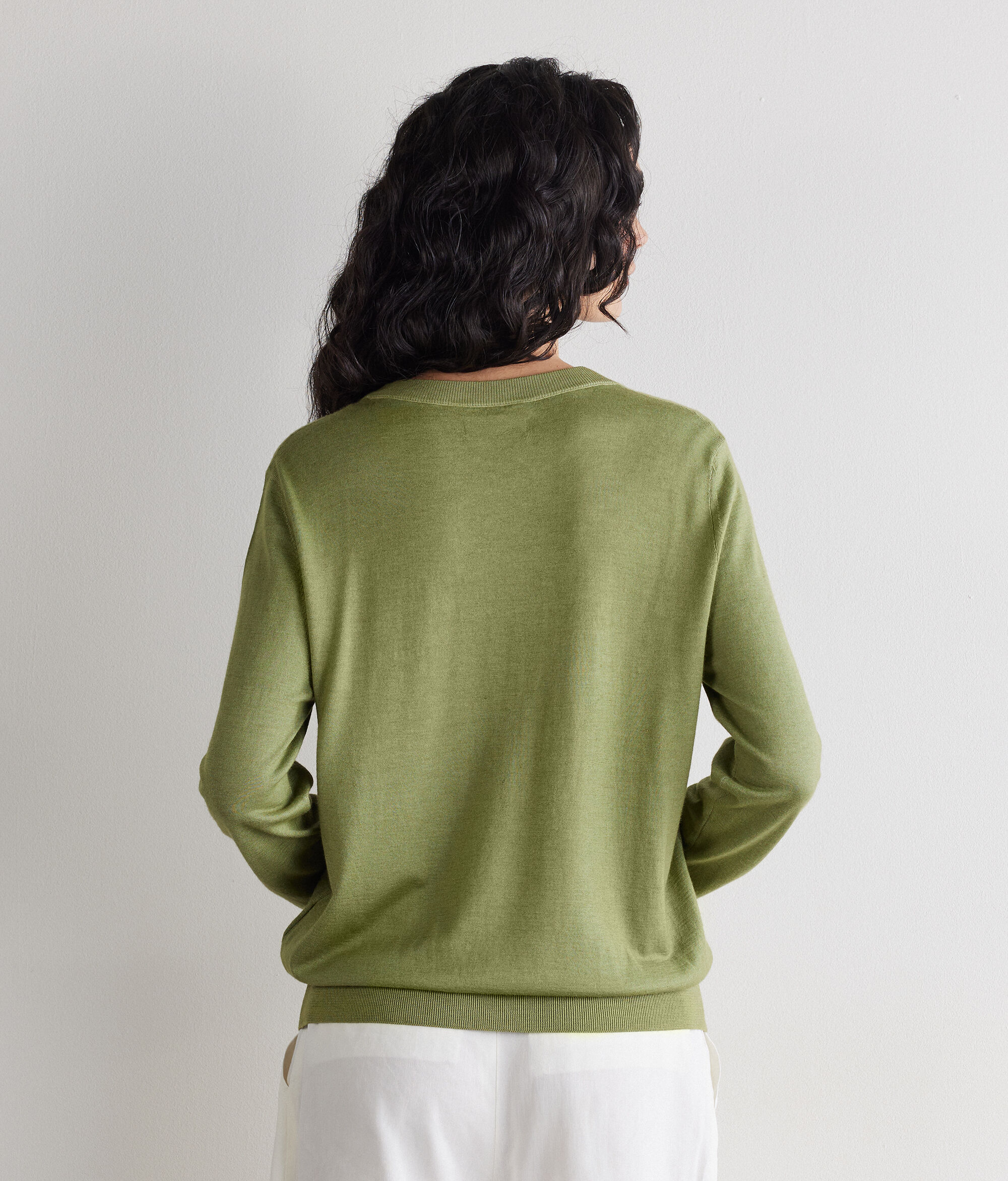 Dodajte luksuz i udobnost u svoju garderobu uz pomoć ovog pulovera okrugla izreza od kvalitetnog i ultratankog kašmira. Dizajn je obogaćen rebrastim završetkom na izrezu, manžetama i donjem dijelu, dajući vrhunsku notu čistom stilu odjevnog komada. Savršen za ured ili slobodno vrijeme neizostavan je odjevni komad u svježijim danima.