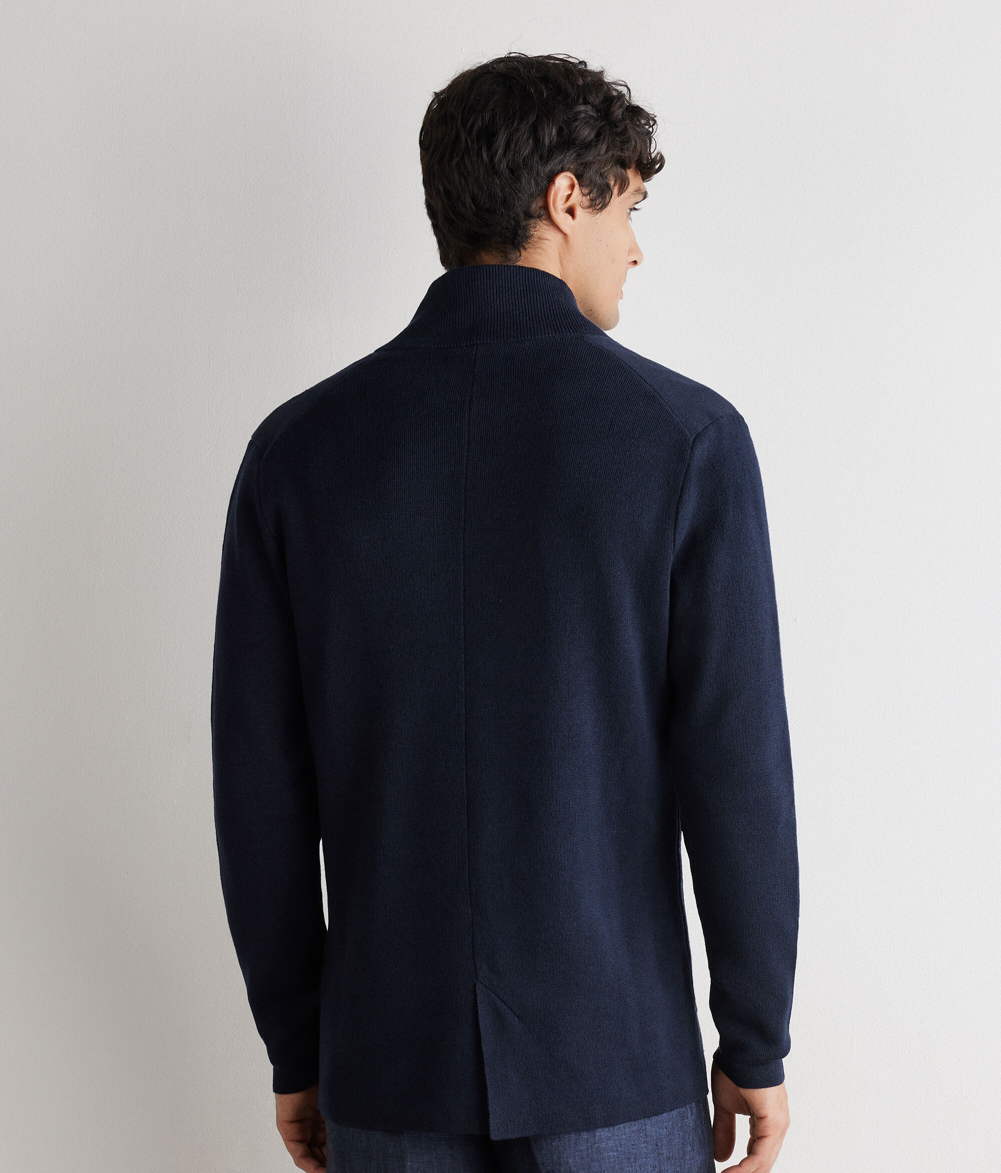 Sako od pletiva od lana i pamuka izrađen je od kvalitetne izrade od ubodne tkanine. Model ima rebrasti ovratnik, klasičan rever i središnje kopčanje na tri gumba. Našiveni džepovi i stražnji središnji prorez upotpunjuju dizajn regularnog kroja, čineći ga idealnim za kombinacije casual-chic ili profinjeniji stil.