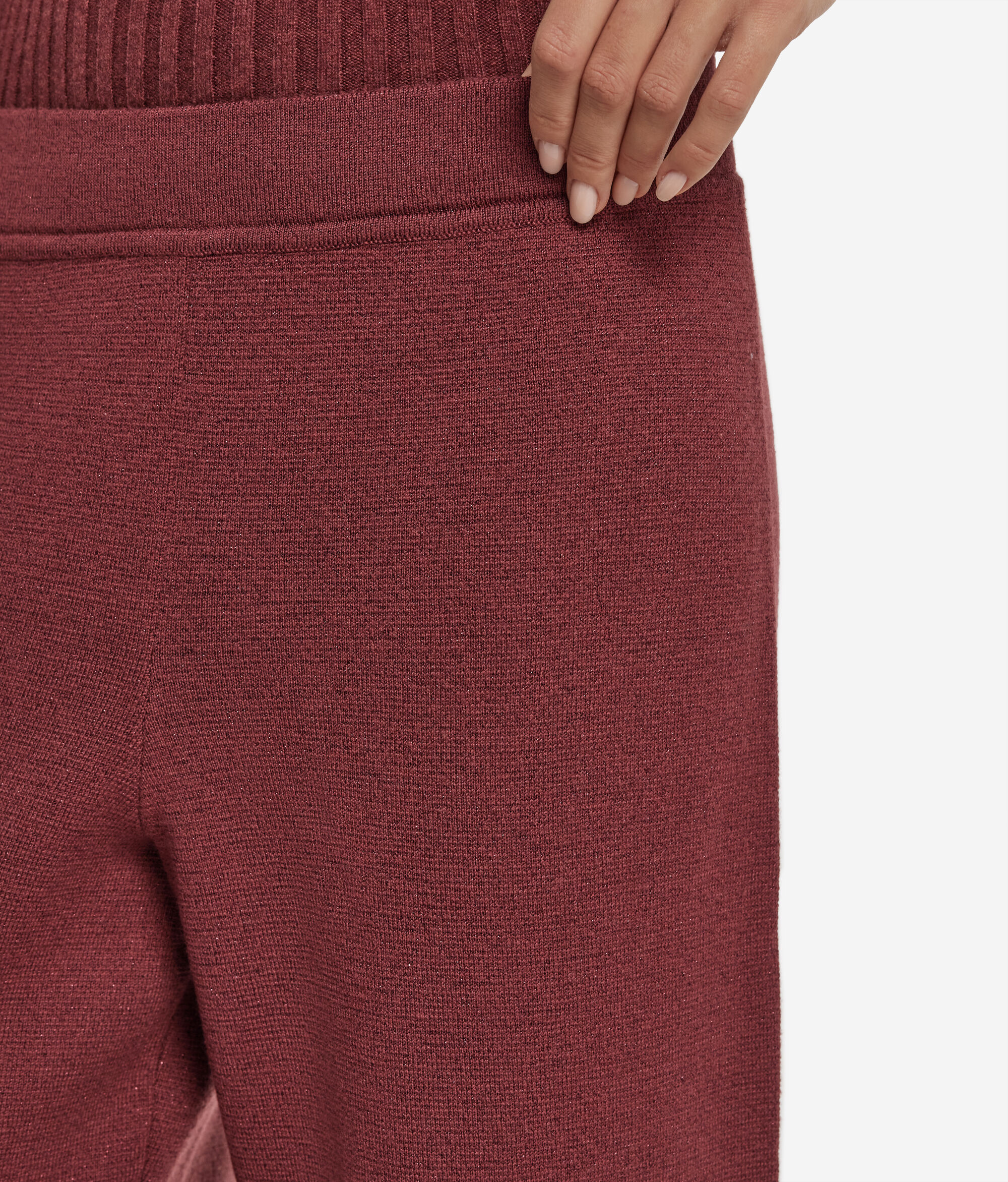 Izrađene od vune s nježnim lurex odsjajima, ove hlače unose dašak sjaja i karaktera u svaki izgled. Elastični pojas u struku pruža udobnost i svestranost, dok dužina do gležnjeva i opuštena linija oblikuju skladnu i suvremenu siluetu. Stilski saveznik koji s lakoćom prati od dnevnih do večernjih trenutaka, pretvarajući jednostavnost u profinjenost.