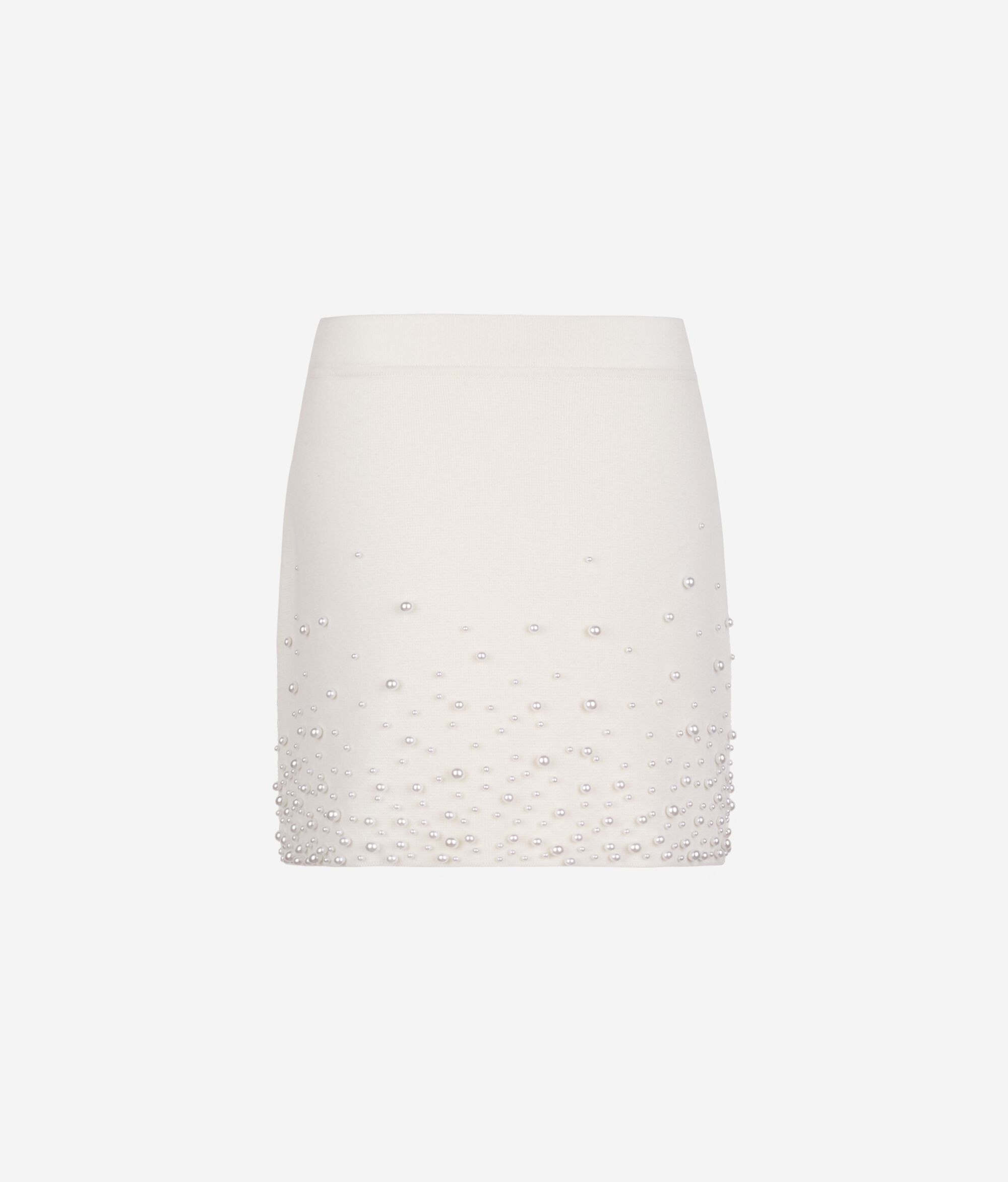 Tiha elegancija suknje koja spaja čistoću dizajna s beskrajnom mekoćom ultramekog kašmira. Pletena izrada prirodno oblikuje linije, dok uski kroj naglašava siluetu. Sitne perle, majstorski nanesene, osvjetljavaju površinu stvarajući igru odsjaja koja se skladno stapa s teksturom pređe.