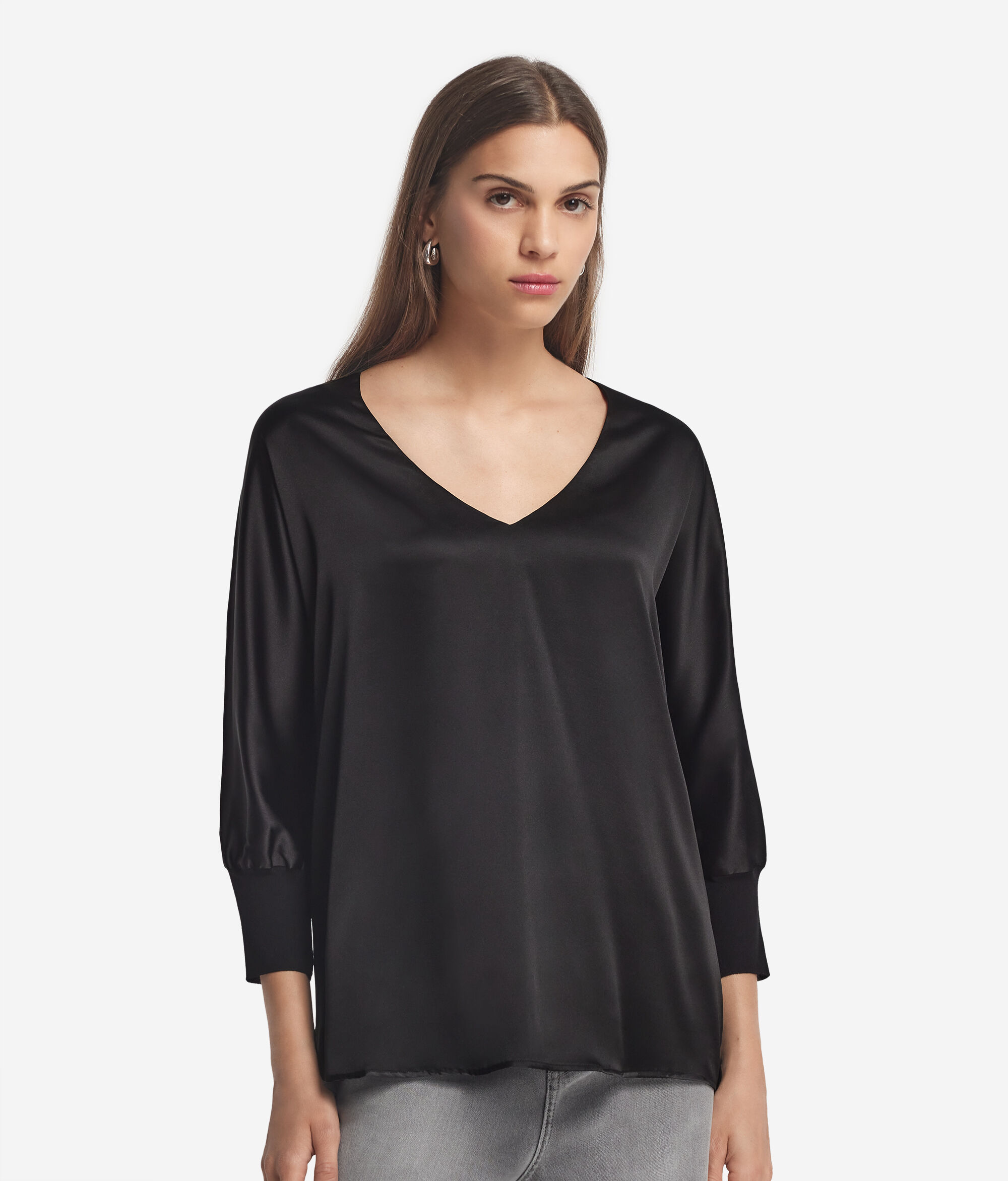 Svilena bluza s V-izrezom