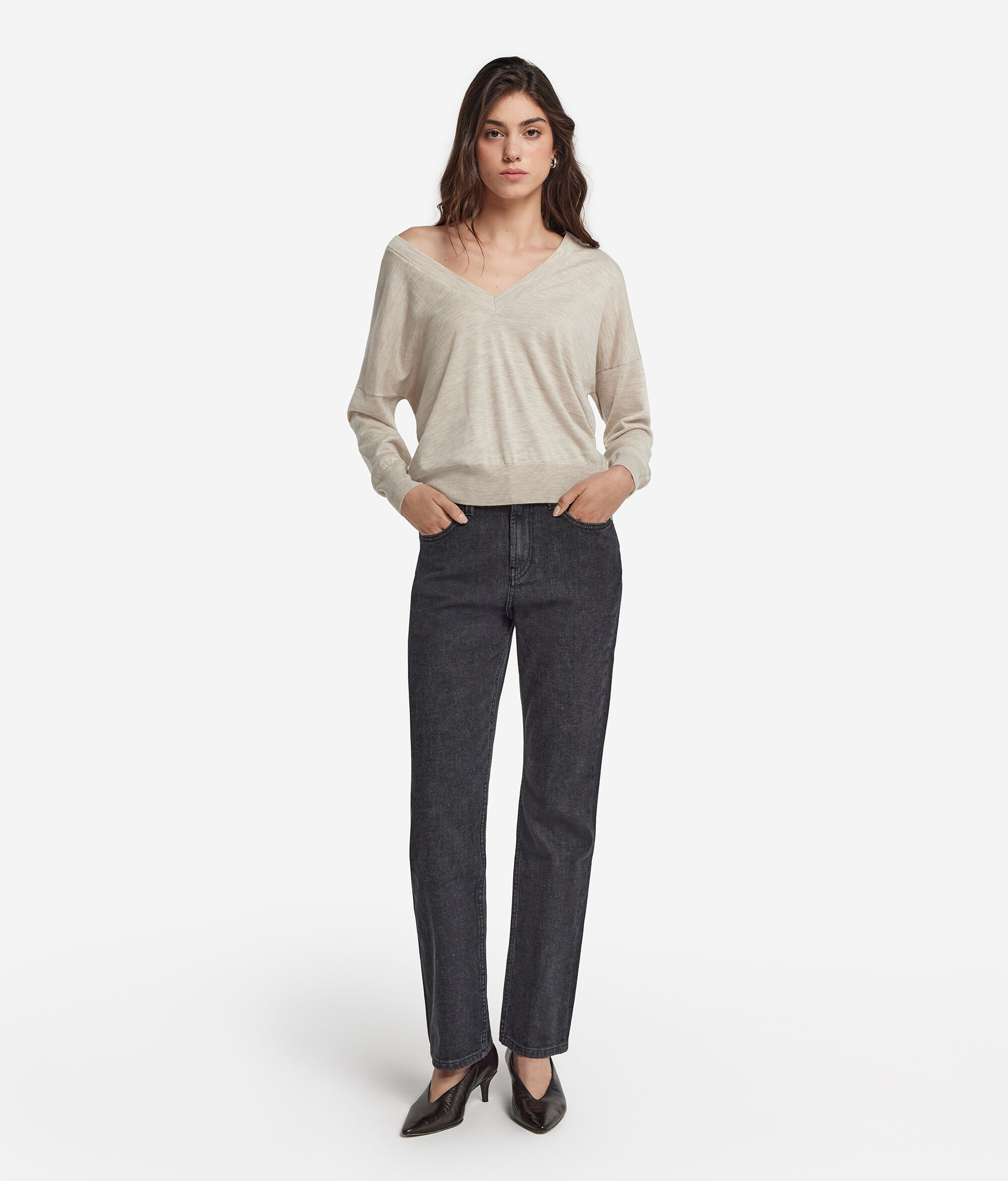 Majica s ovratnikom na V-izrez od kašmira s bočnim prorezima