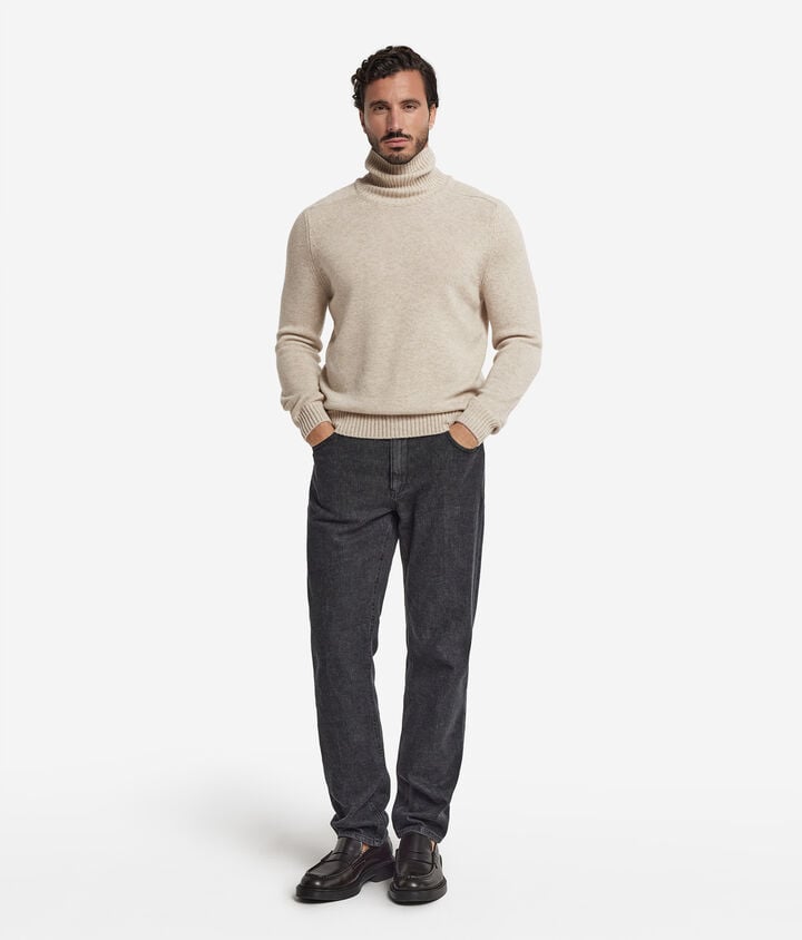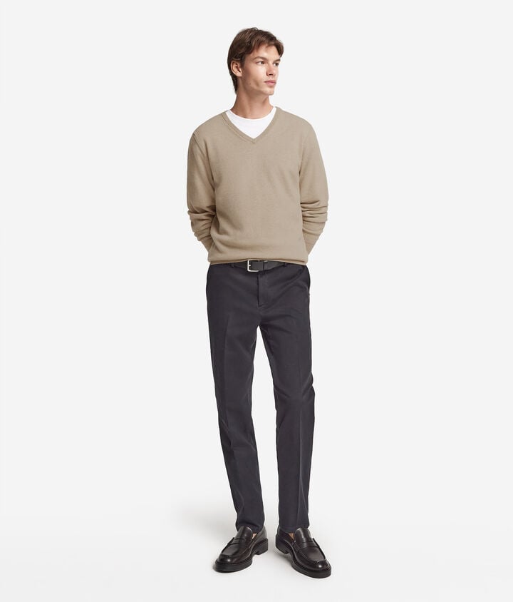 Ultrasoft Undyed Cashmere round neck cable stitch T-shirt