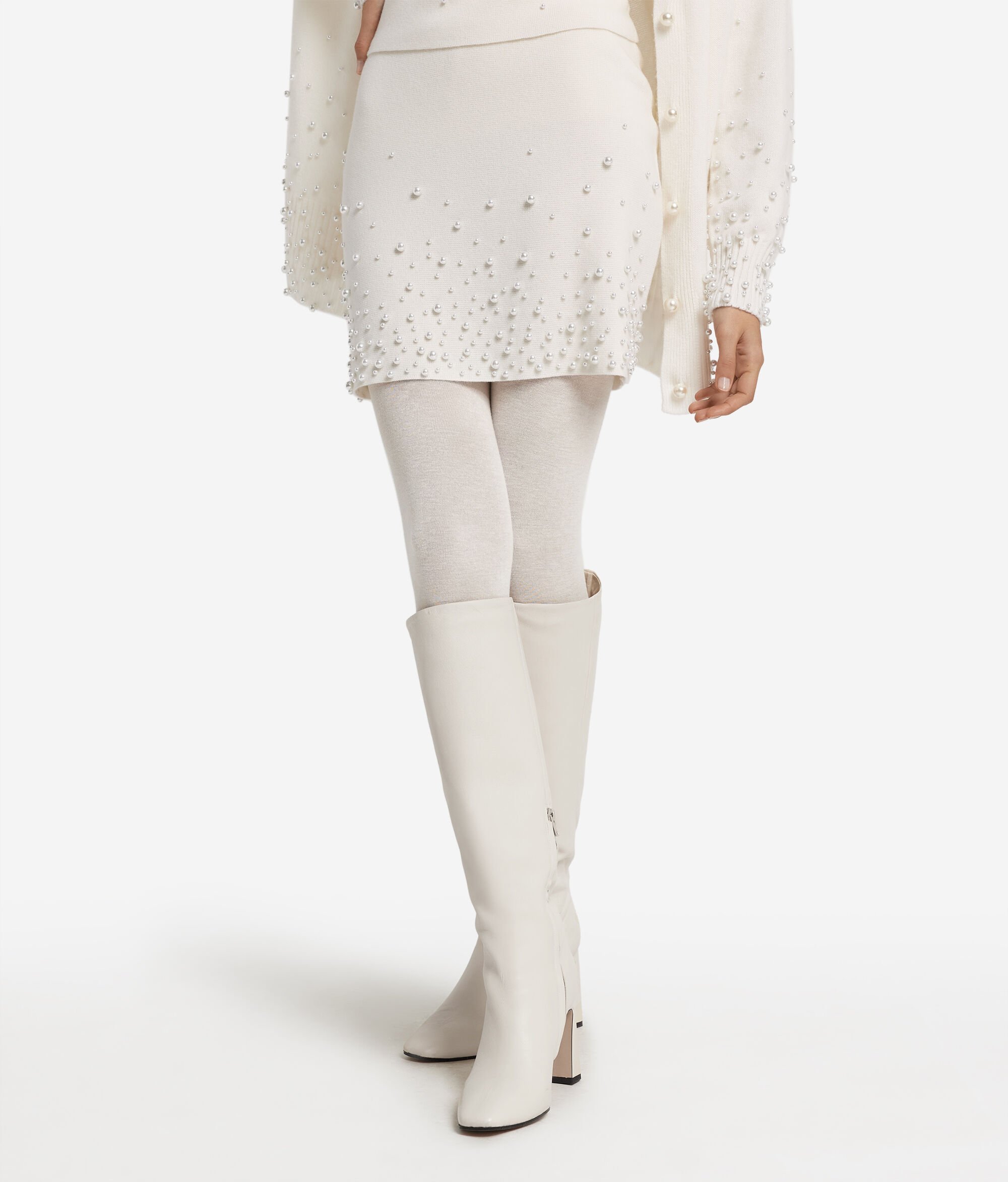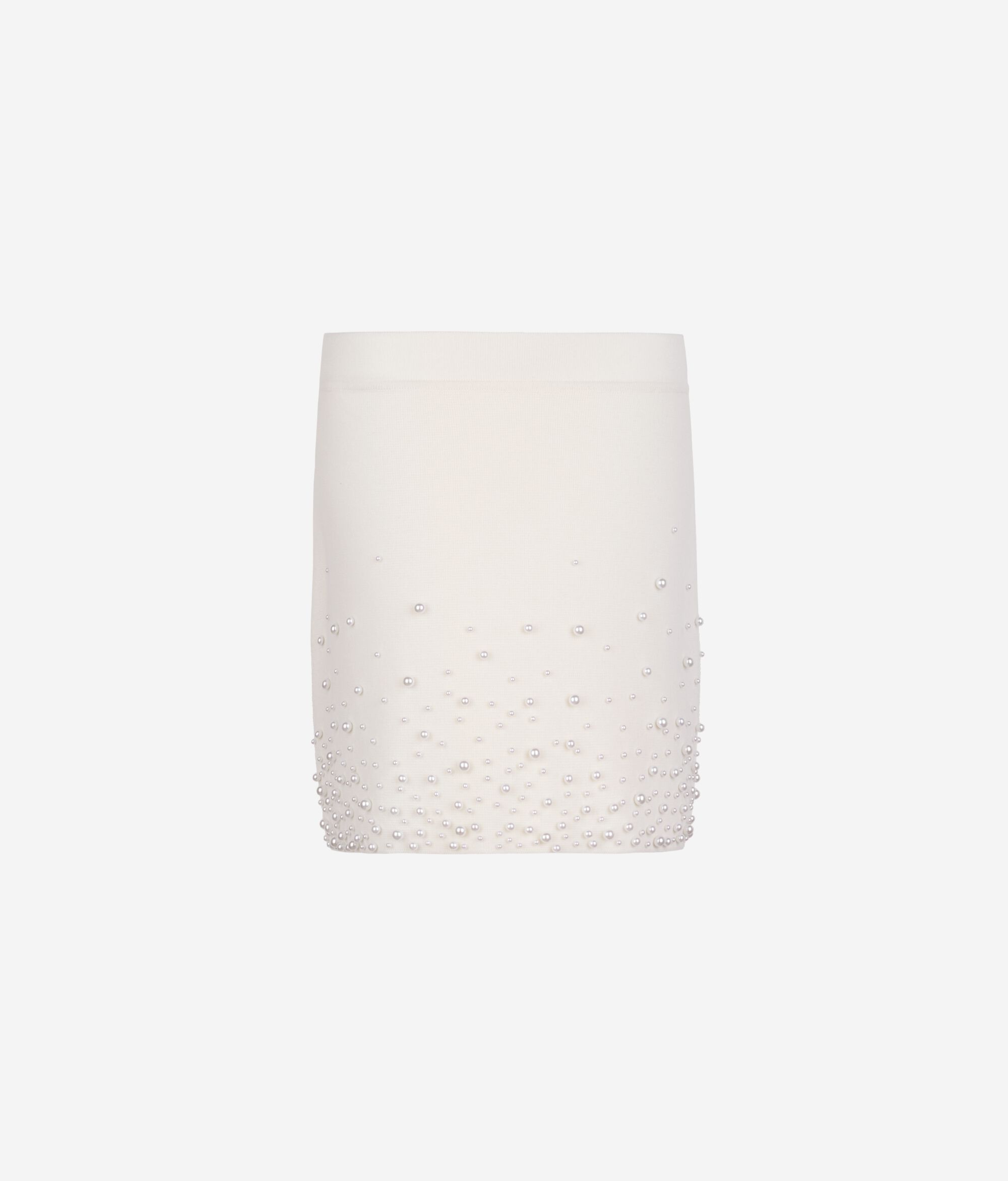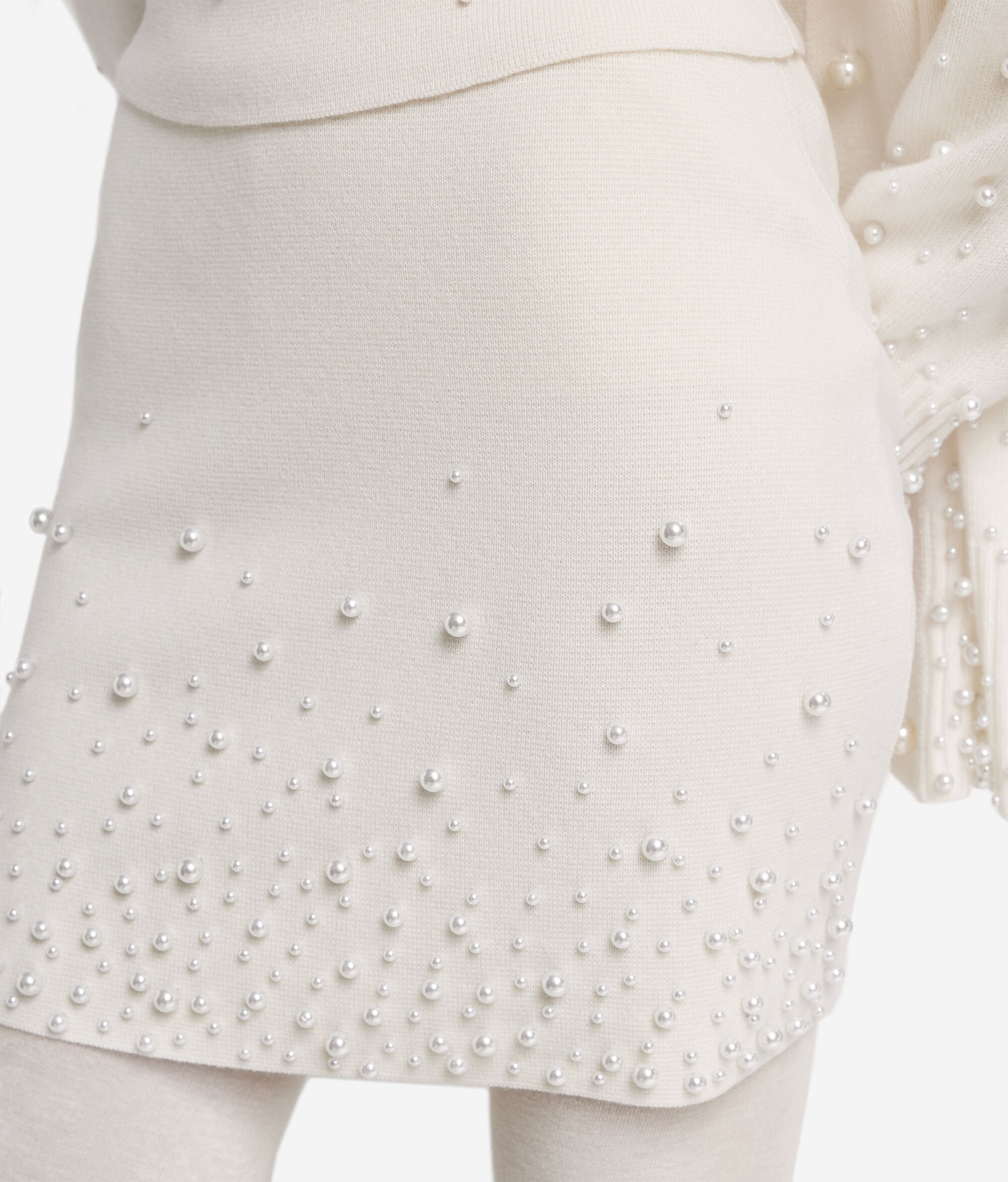 With subtle elegance, this skirt combines the purity of design with the endless softness of Ultrasoft Cashmere. The detail of the knit naturally defines the lines, while the slim fit sculpts the silhouette. Small, expertly applied beads illuminate the surface, creating a play of light that interacts with the texture of the yarn.