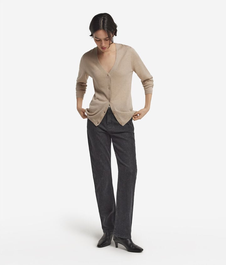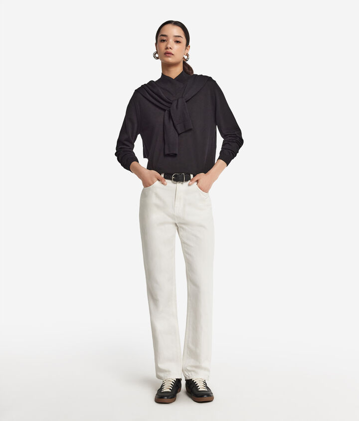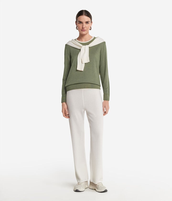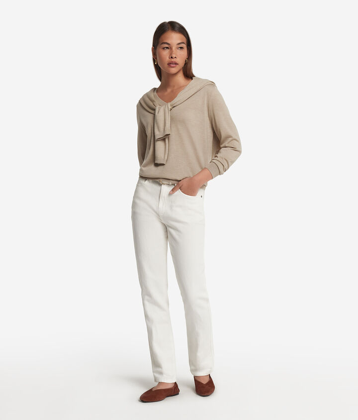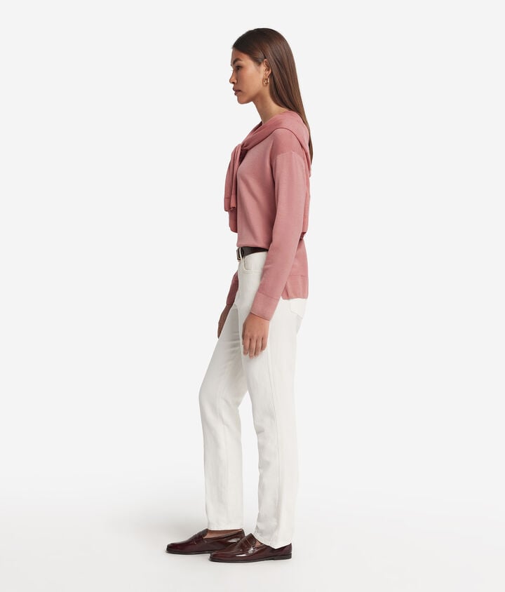 Short-Sleeved V-Neck Silk and Cotton Jumper