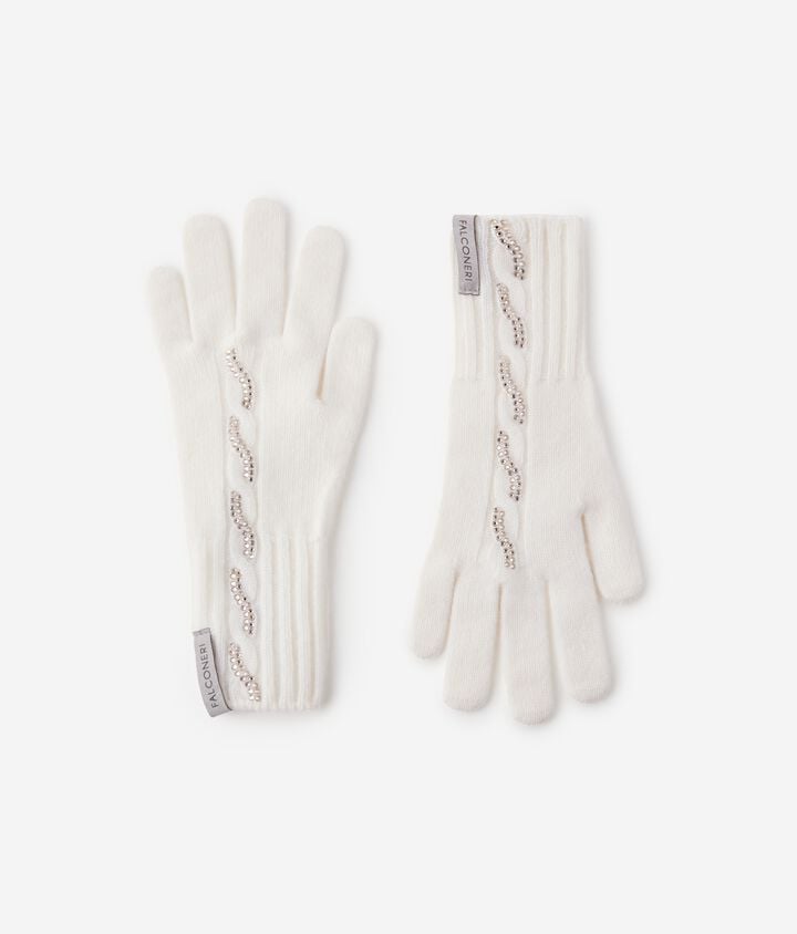 Fonott Mintás Ultrasoft Kasmír Kesztyű Strasszkövekkel