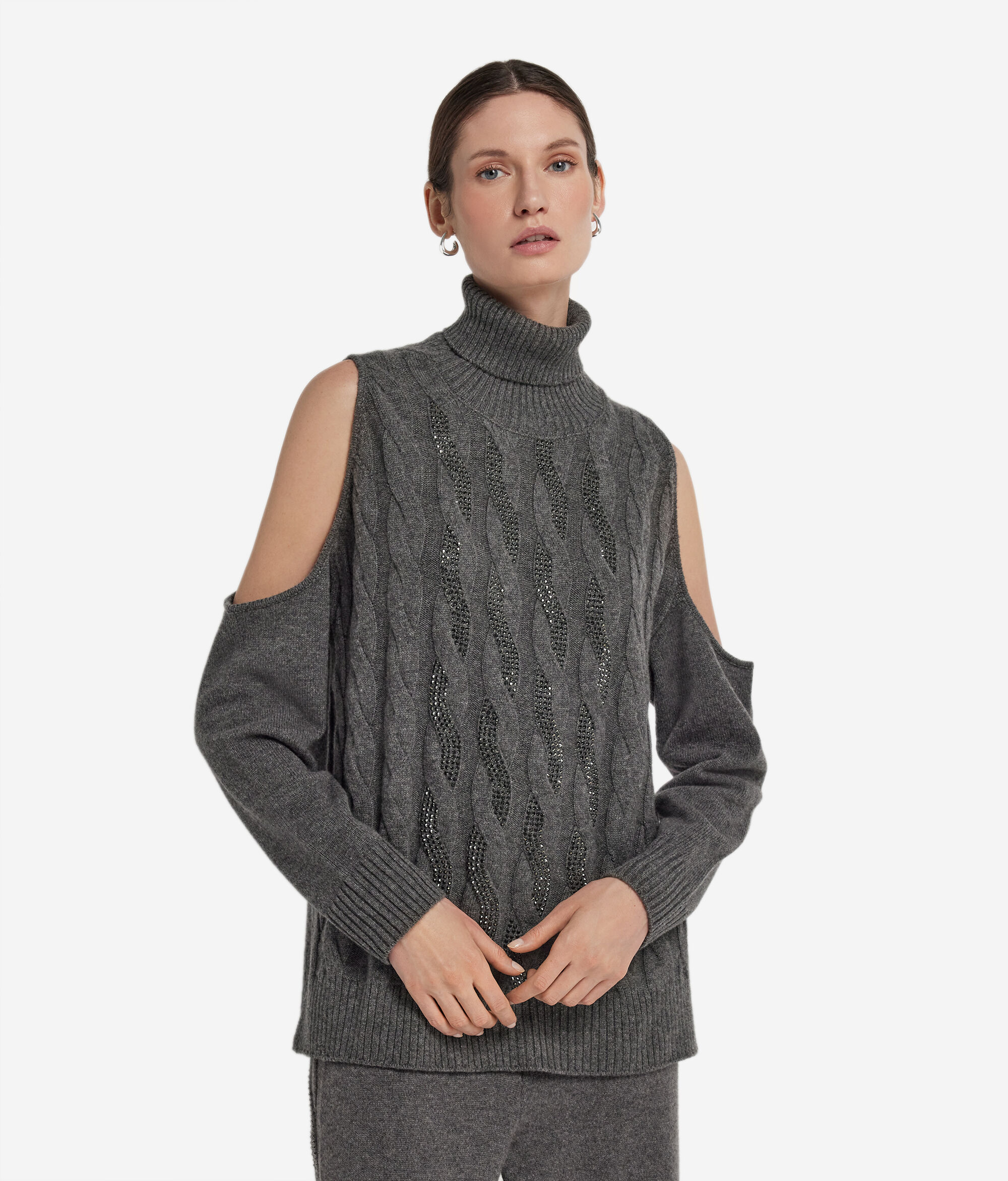 Fonott Mintás Ultrasoft Kasmír Pulóver Strasszkövekkel és Kivágással