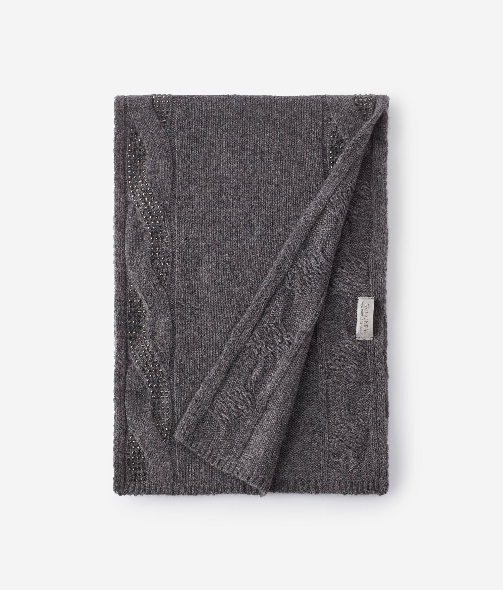 A kifinomult stílus és a minőségi részletek jellemzik ezt a puha Ultrasoft kasmír sálat. Hosszanti fonott mintája egyedi textúrát kreál, a strasszköves díszítés pedig visszafogott csillogást biztosít. A szegélyeken található bordázott kialakítás határozott megjelenést kölcsönöz, ideális egyszerű, de elegáns összeállítások részeként.