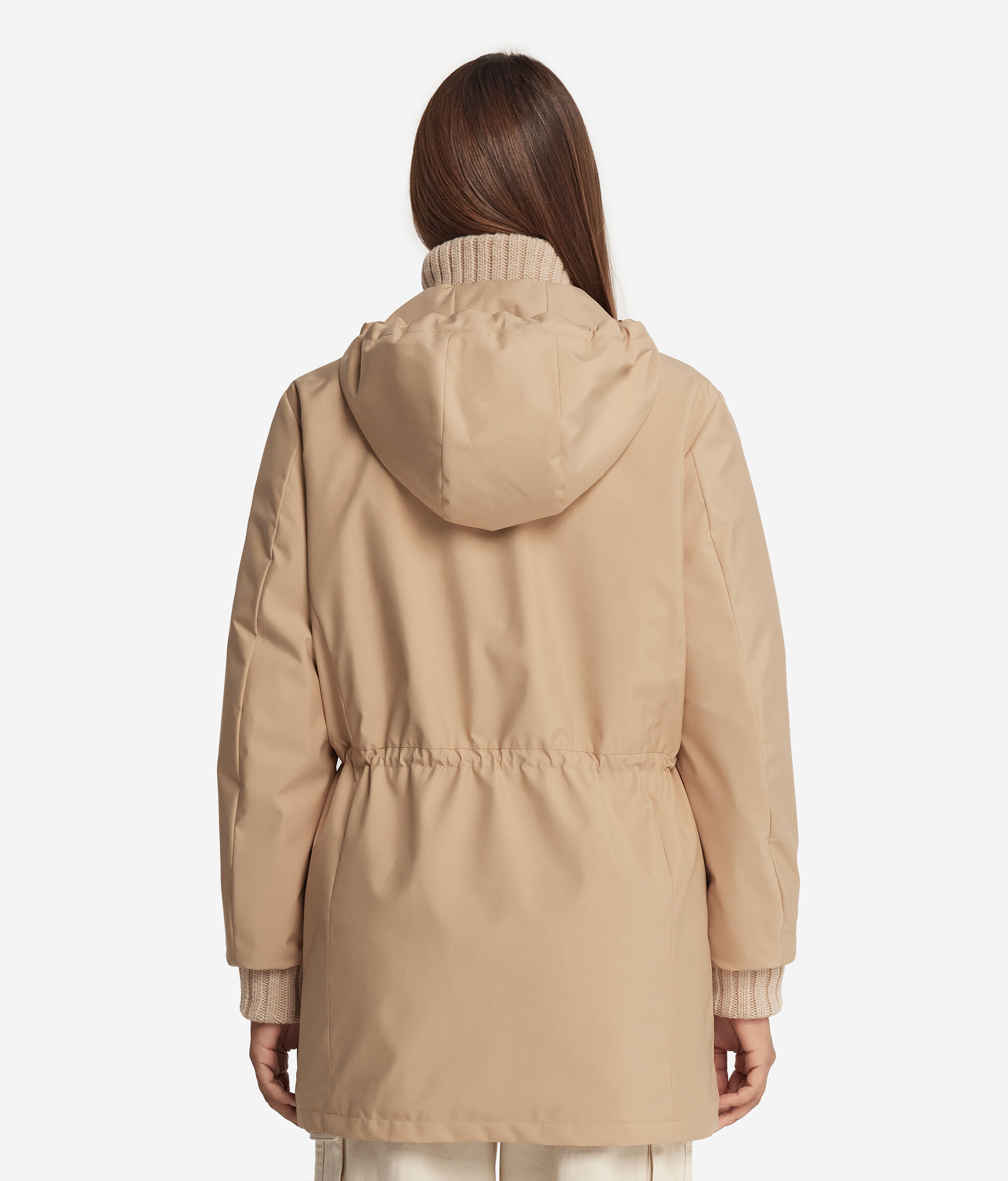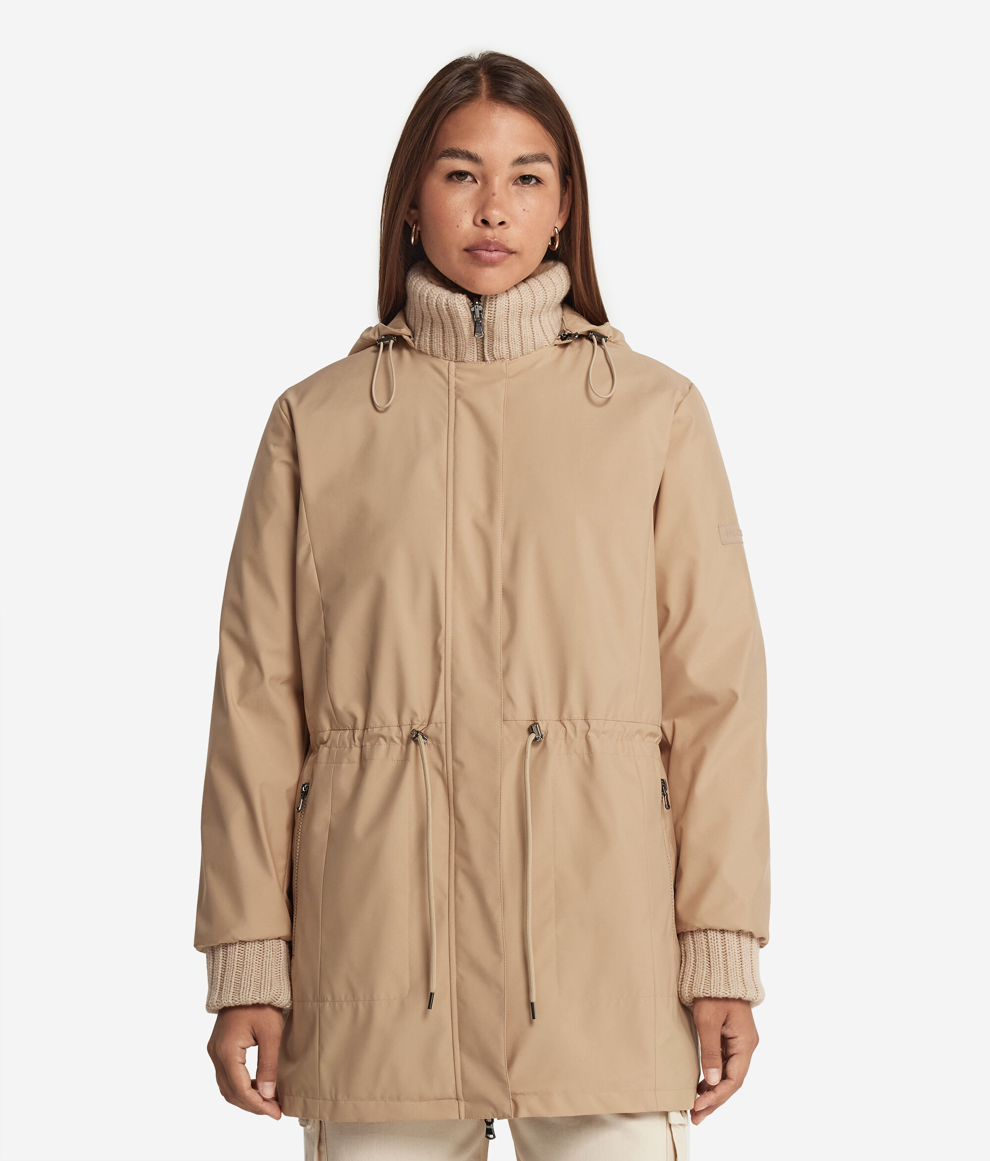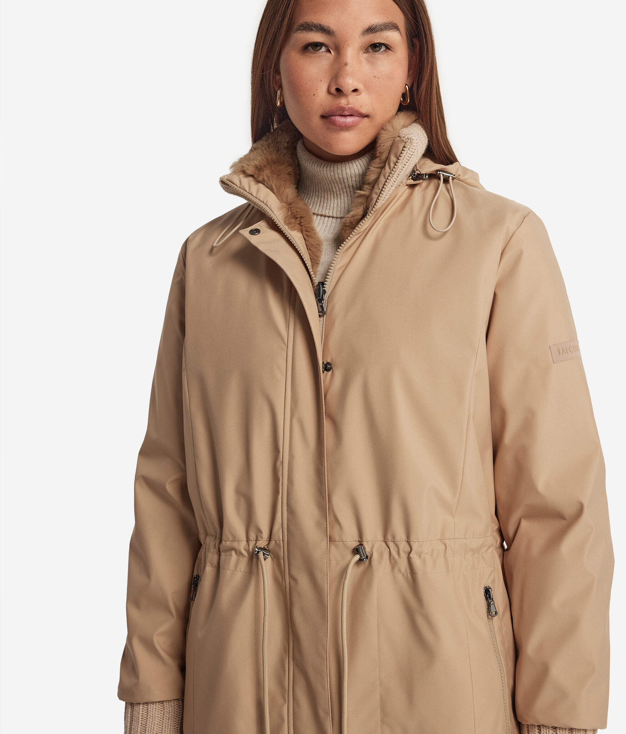 Ebben a kabátban az elegáns stílus a praktikummal és a kényelemmel egyesül. Elsőrangú anyagokból készült, mint a külső, technikai szövet és a puha nyúlszőrme bélés. A kifinomult dizájnt fokozzák a minőségi Ultrasoft kasmírból készült gallér és ujjvégek. A levehető kapucni és a derékon lévő szabályozható összehúzó zsinór kifinomult és komfortos viseletté varázsolják ezt a minden ruhatár számára ideális darabot, amely visszafogott luxust és maradandó stílust ajándékoz.