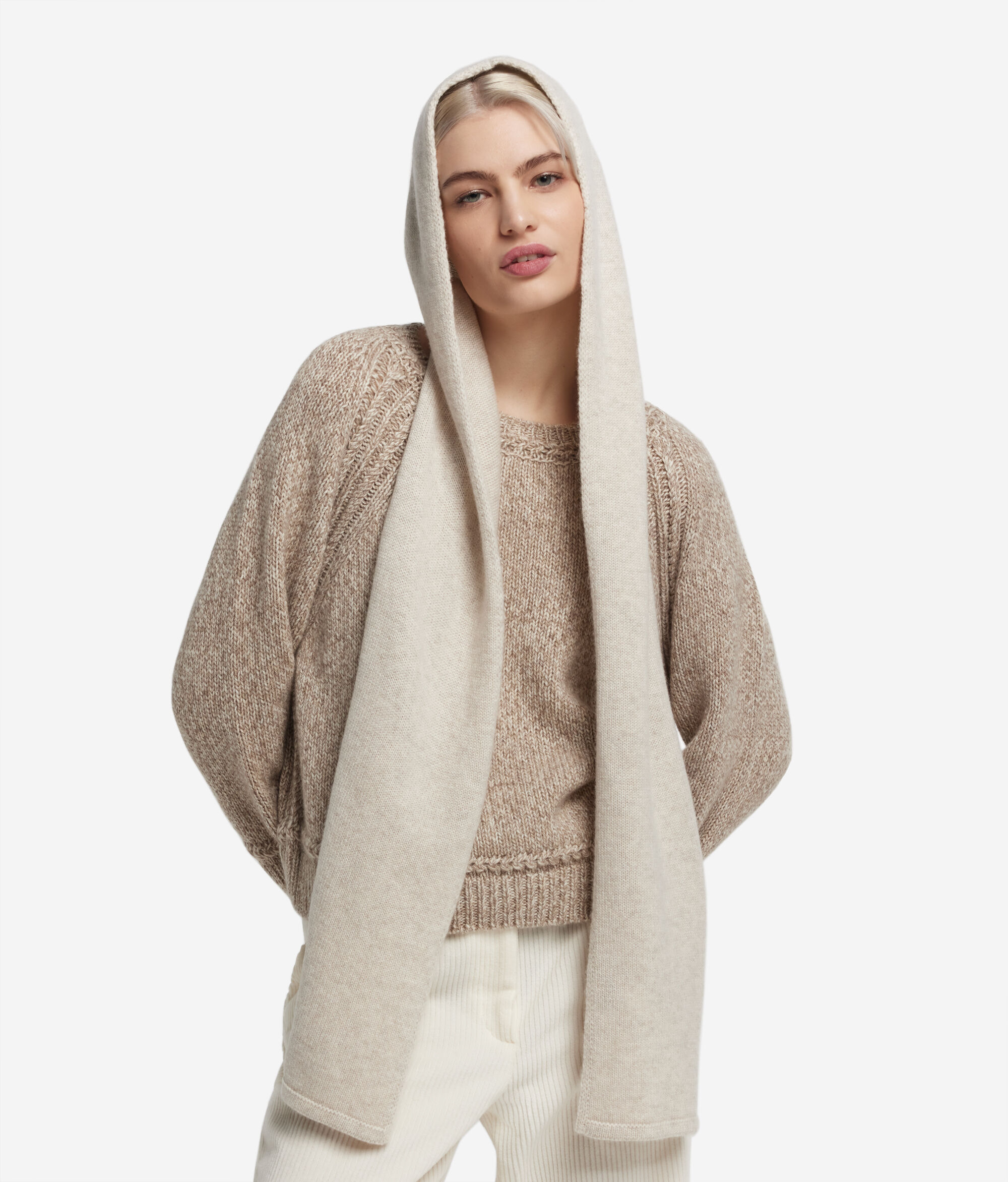 Egy ikonikus kiegészítő, amely a kényelem és a modern stílus ötvözete. Minőségi és kivételesen puha ultrasoft kasmírból készült, meleget és könnyed viseletet biztosítva. A sállal ellátott kapucni könnyed és sokoldalú dizájnt kölcsönöz, amely minden összeállítást igazán stílusossá varázsol. A bordázott részletek kifinomult karakterről árulkodnak, fokozva ennek az öltözékek főszereplőjévé válni hivatott ruhadarabnak az időtlen eleganciáját.