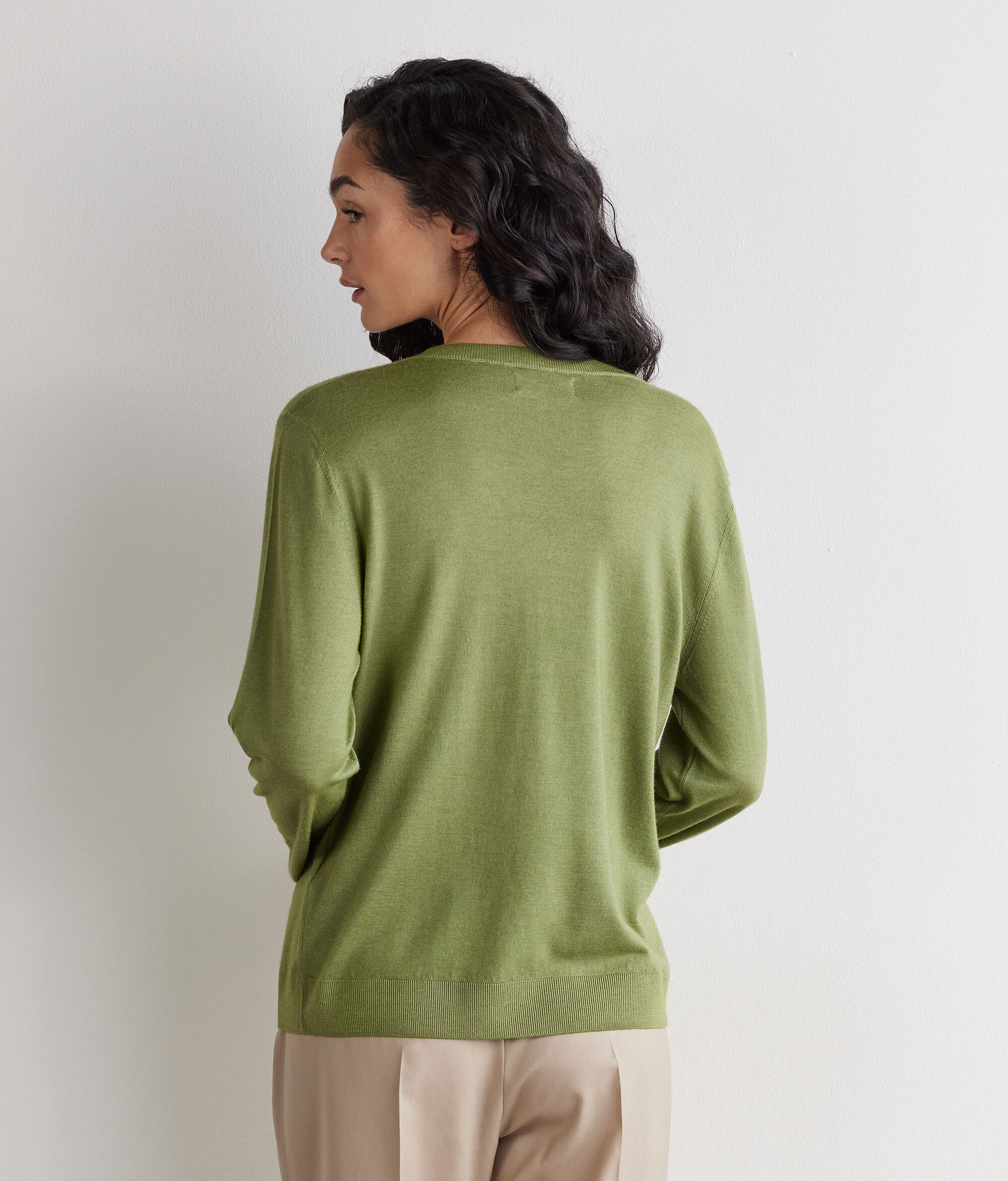 Vigyen luxust és kényelmet ruhatárába ezzel az ultrakönnyű kasmírból készül V-nyakú pulóverrel. A dizájn gazdagítása érdekében a nyakkivágás, a mandzsetta és a szegély bordázott kidolgozása egy kis eleganciát ad hozzá a ruhadarab minimalista stílusához. Lágy fazonjának köszönhetően a klasszikus és a modern tökéletes keveréke, amely egy kis diszkrét, de időtlen luxust visz minden ruhatárba.
