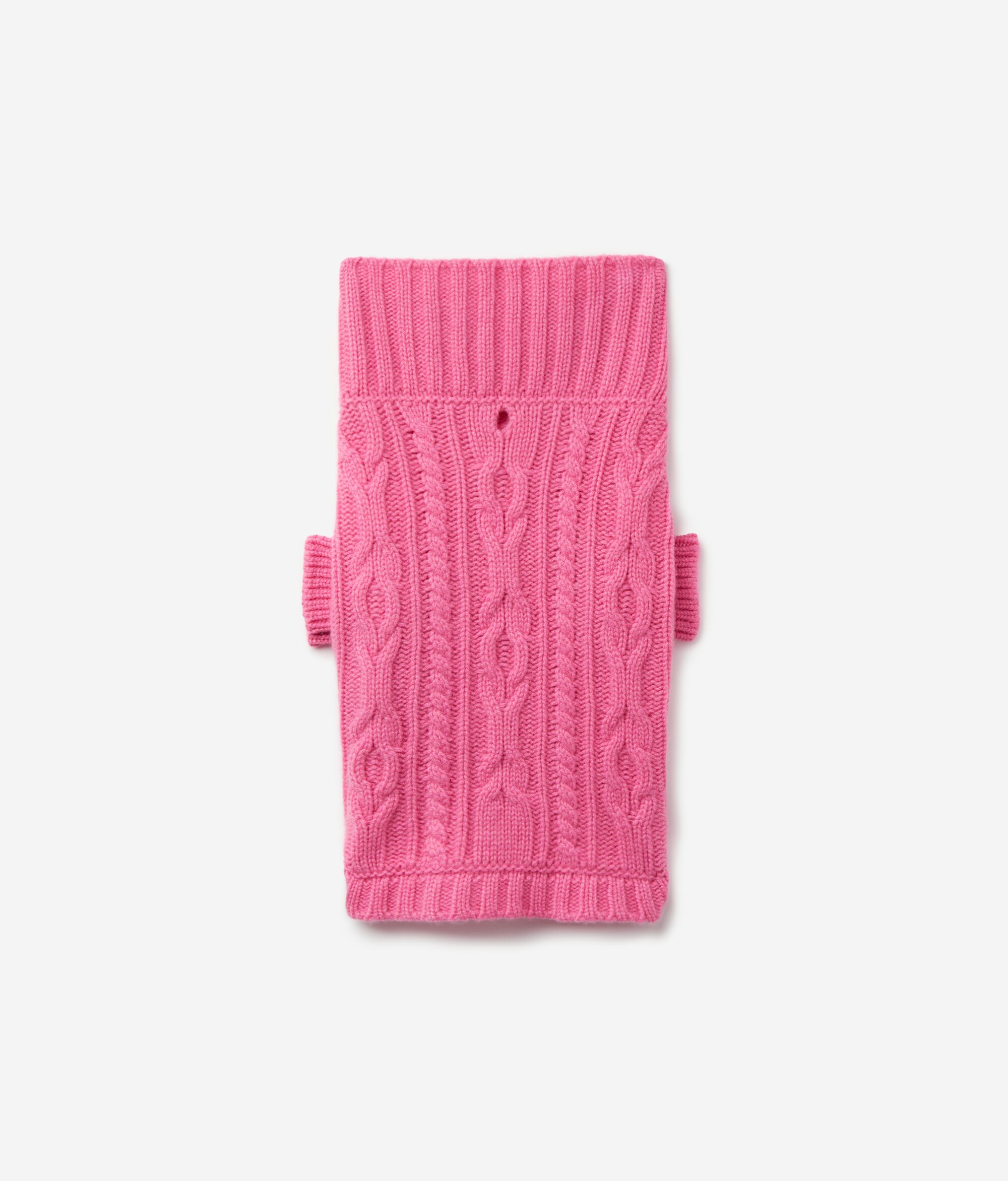 L'esclusiva lavorazione a costine caratterizza questo lussuoso abito per cagnolini realizzato in morbido cashmere e dotato di un discreto foro per il guinzaglio sul retro.