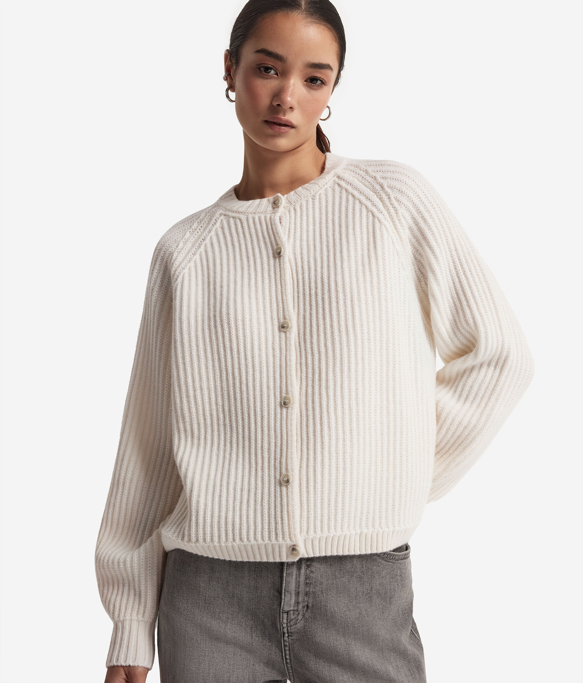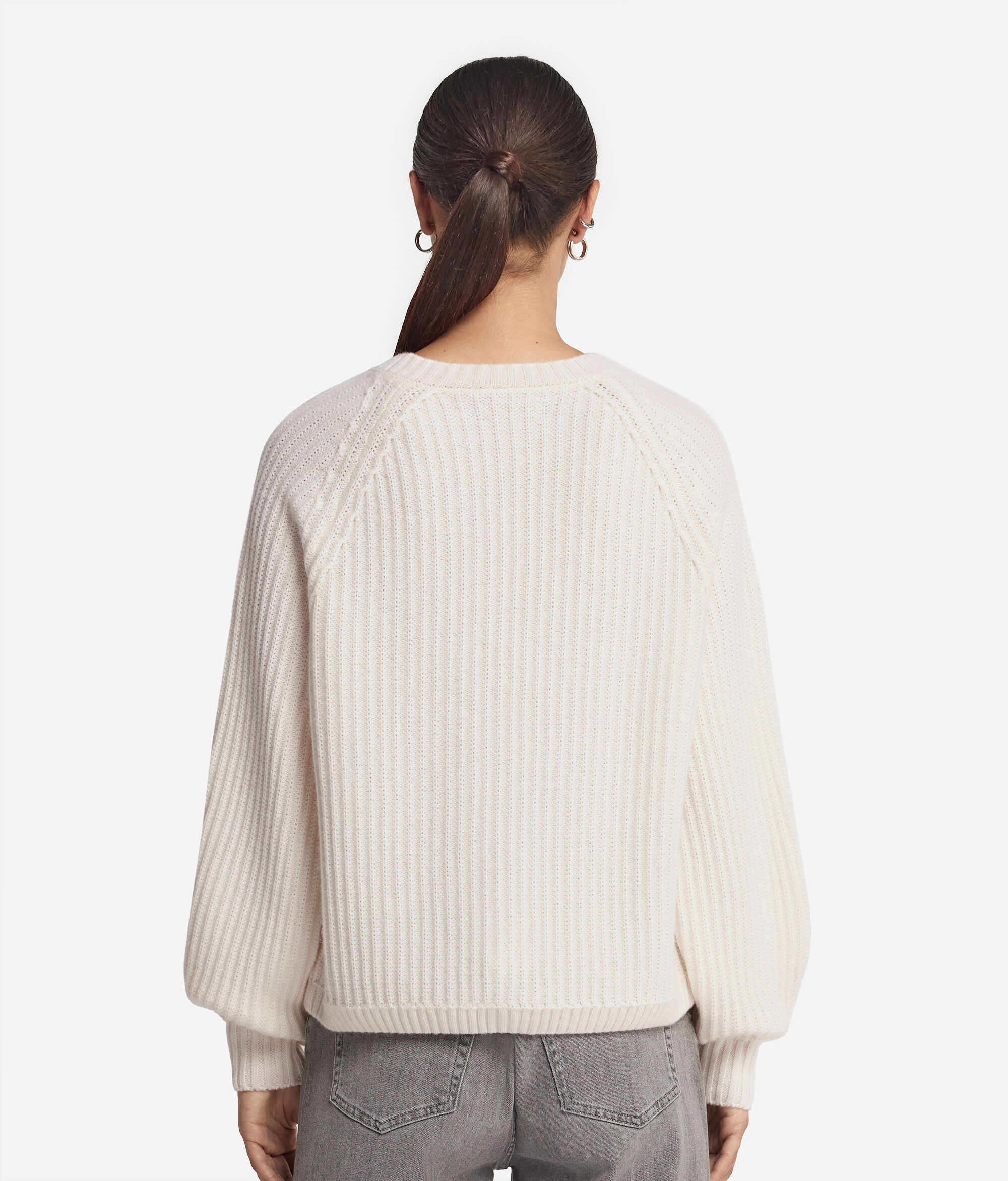 In un delicato mix di morbidezza e carattere, questo cardigan combina il pregio del Cashmere Ultrasoft con una complessa lavorazione artigianale. Le maniche sono raglan a palloncino, creando un volume e una silhouette distintiva che dona movimento al look. La lavorazione a coste arricchisce ulteriormente il design, conferendo texture e raffinatezza. La vestibilità morbida dona un aspetto moderno e sofisticato, ideale per elevare qualsiasi outfit con un tocco di eleganza casual e confortevole.