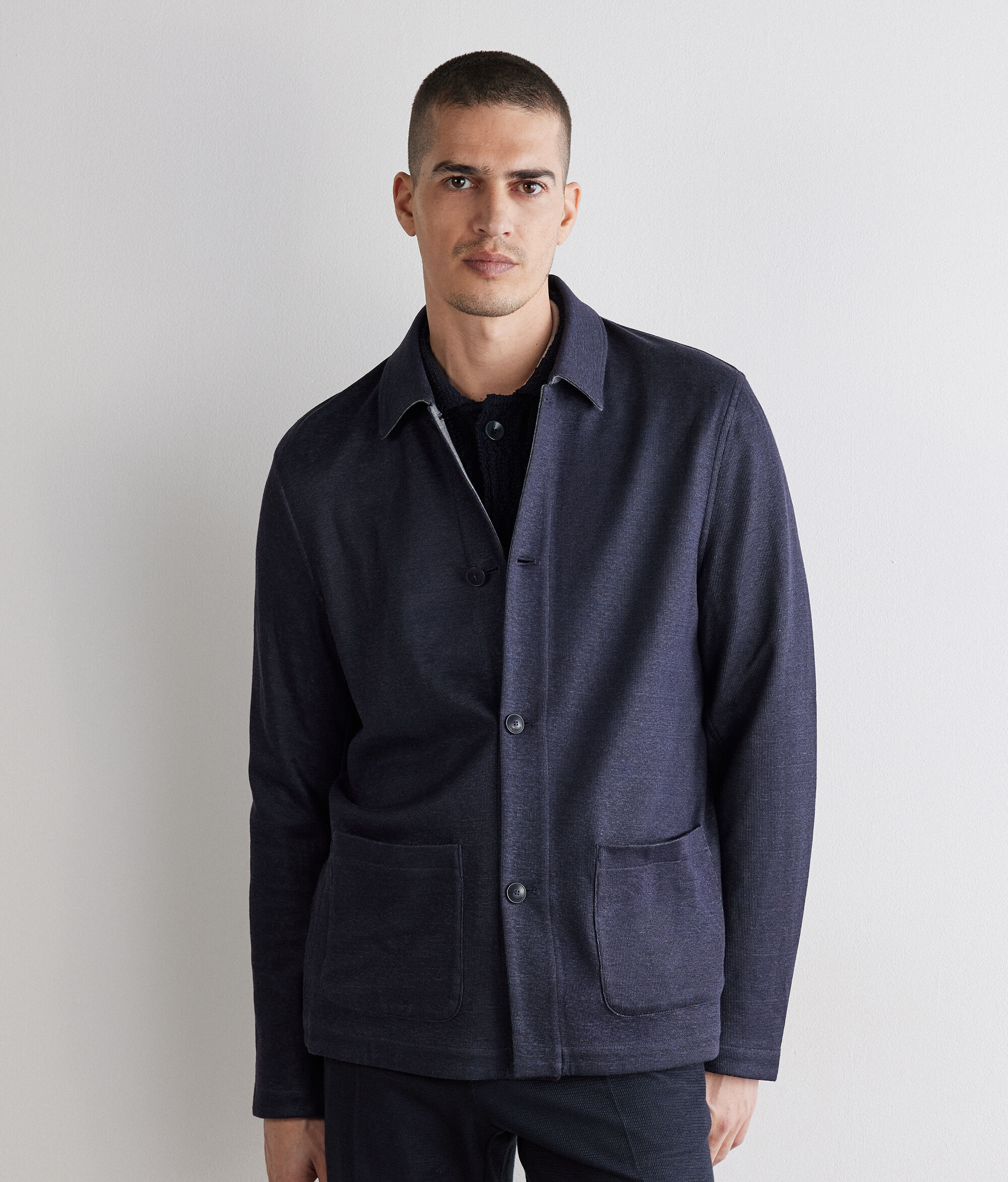Giacca camicia realizzata in cotone e lino. Bicolore e reversibile, è caratterizzata dal colletto e dalla chiusura centrale con bottoni.