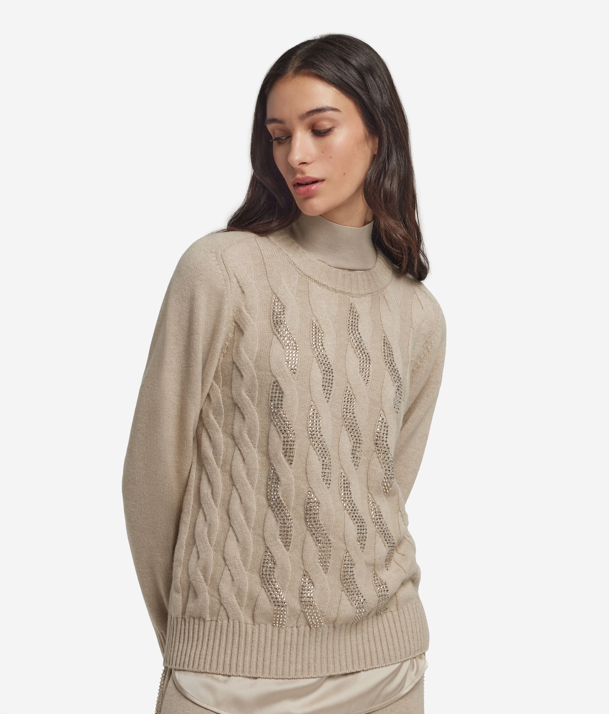 Girocollo con trecce e strass in Cashmere Ultrasoft
